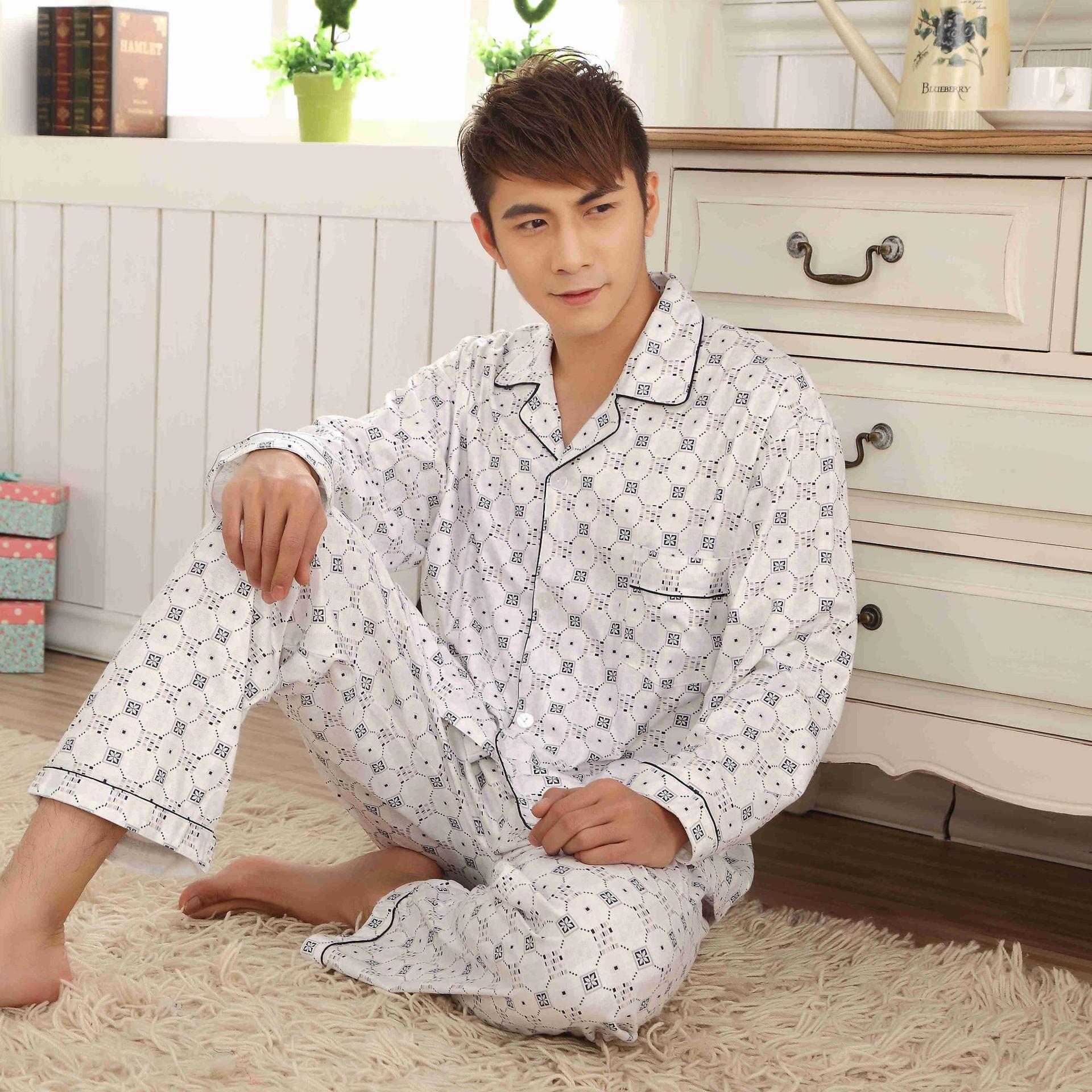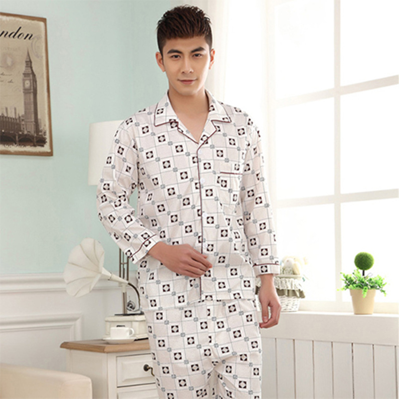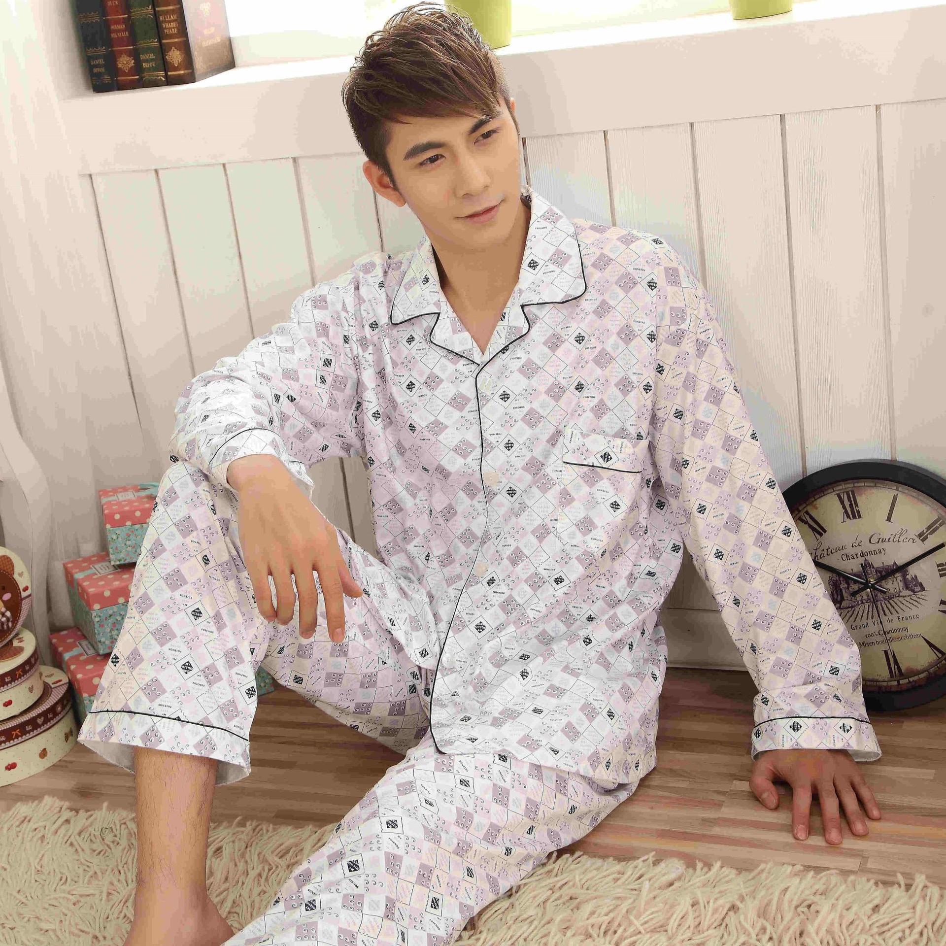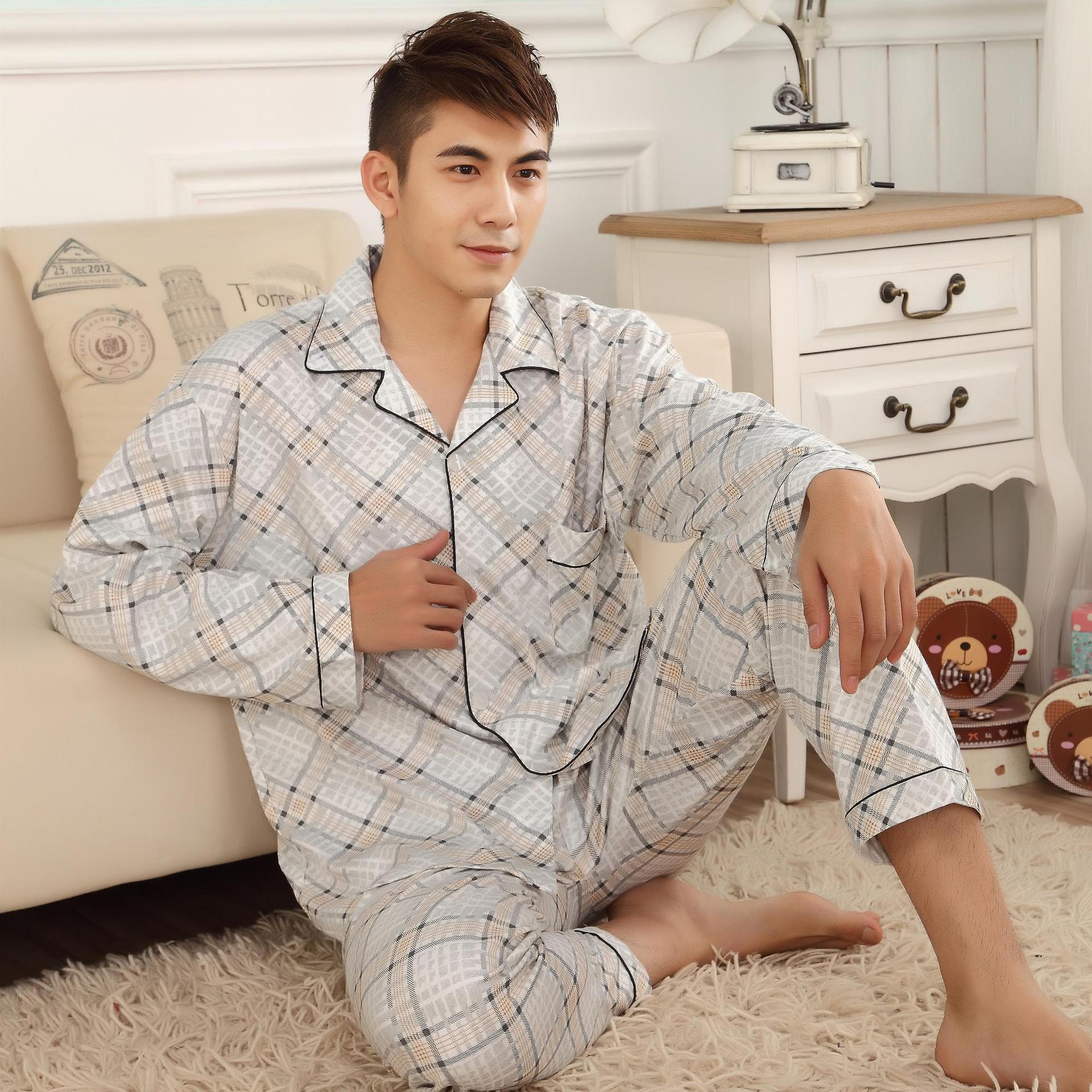 新品睡衣男士春秋冬季新款长袖长裤开衫翻领套装针织棉休闲家居服