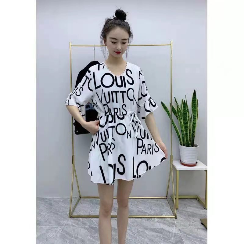 网红洋气连衣裙女短裤套装字母韩版显瘦宽松时尚两件套女