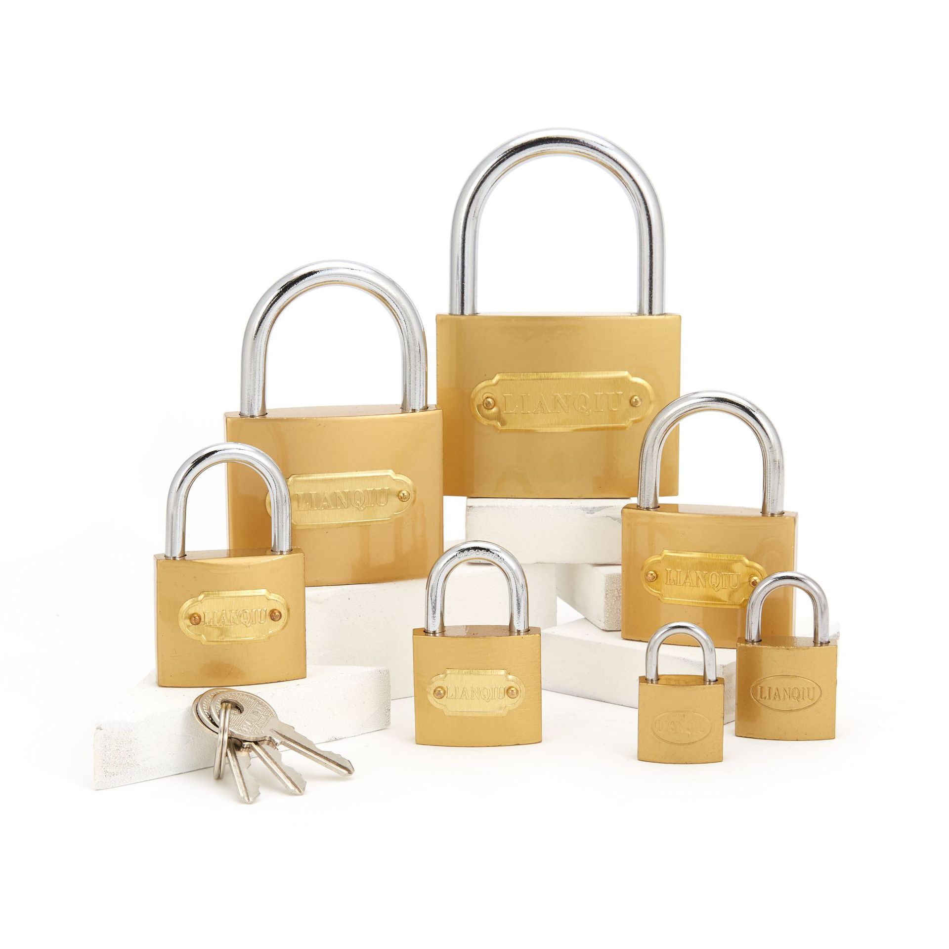 lianqiu一字仿铜锁黄色铁挂锁抽屉宿舍大门学生直供亚马逊爆品