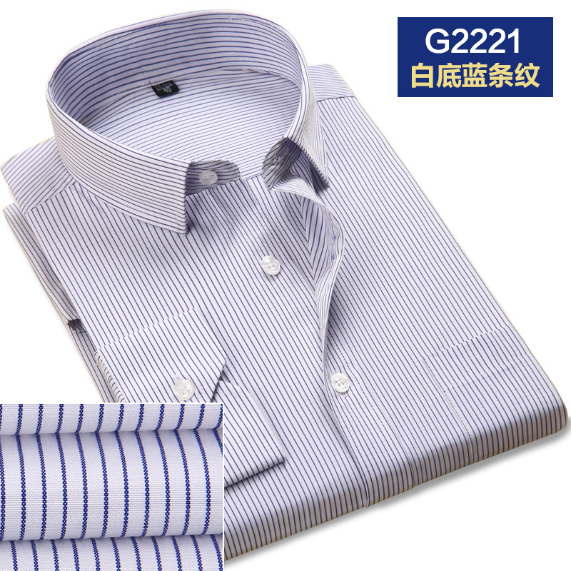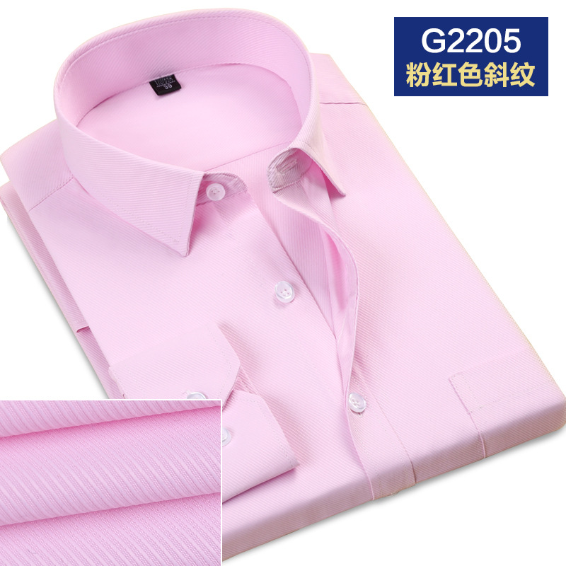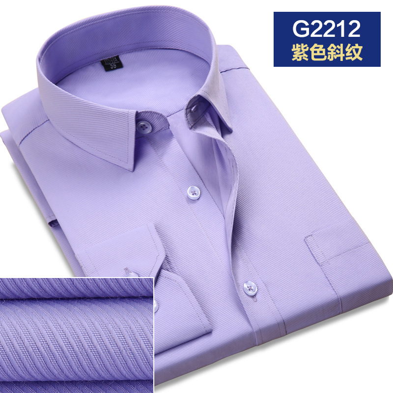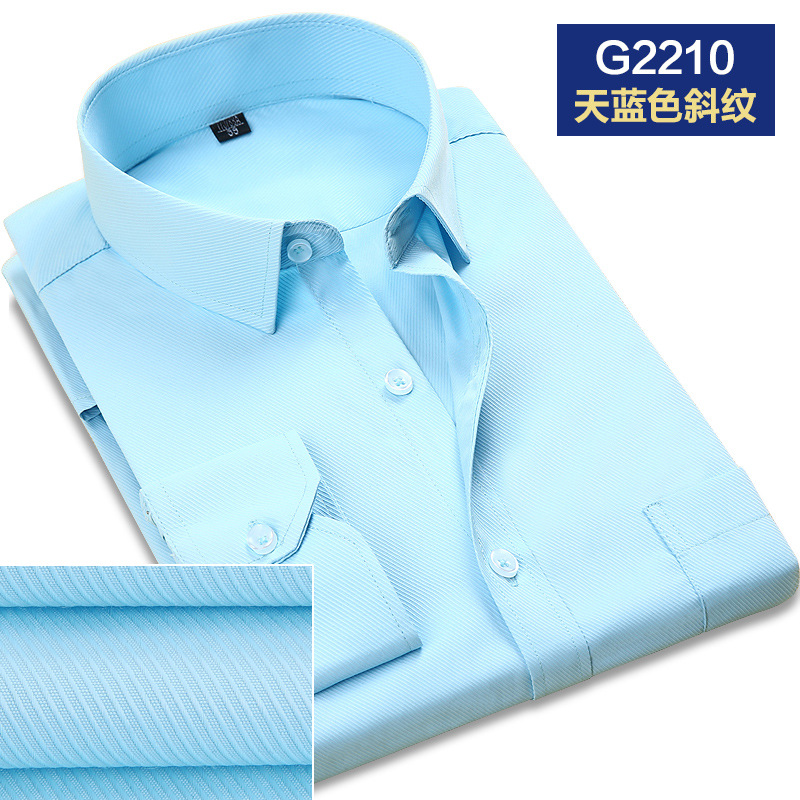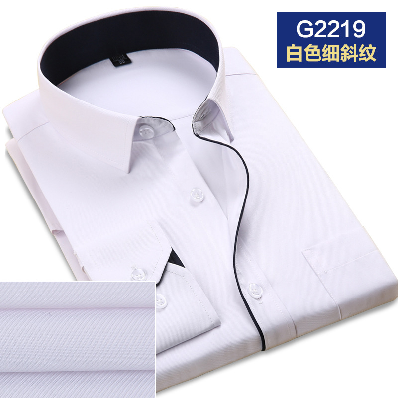 2021春秋季新款男士斜纹修身纯色长袖职业衬衫工装衬衣办公白领
