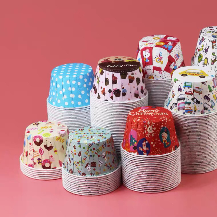 淇家卡通蛋糕纸杯耐高温烤箱专用烘焙纸托卷口卷边面包马芬杯带盖