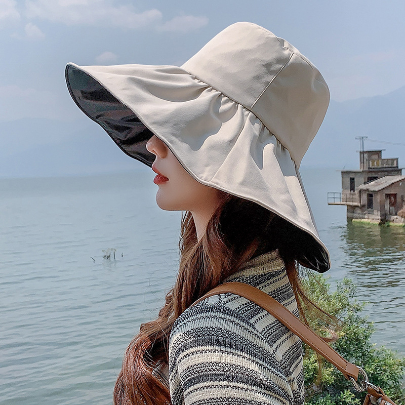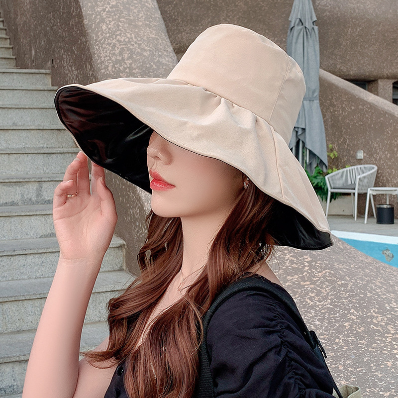 日本黑胶大沿帽子女夏季渔夫帽百搭防晒太阳帽防紫外线遮阳折叠帽