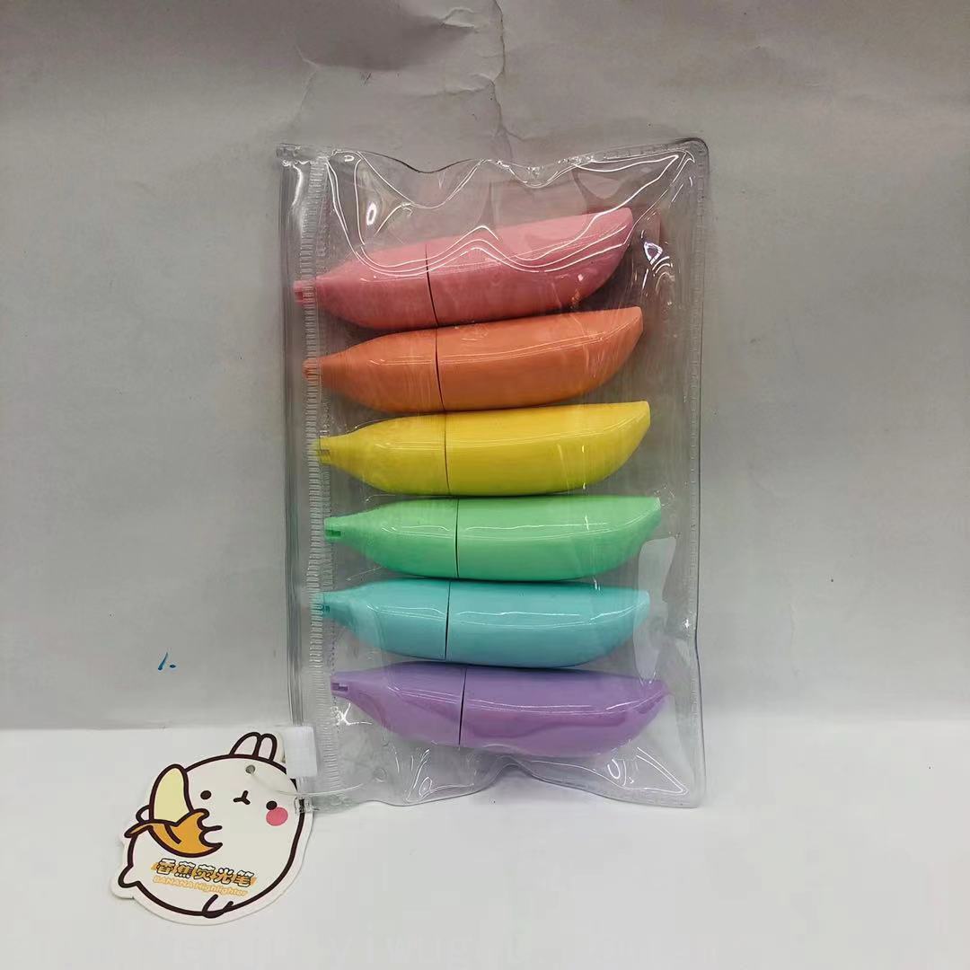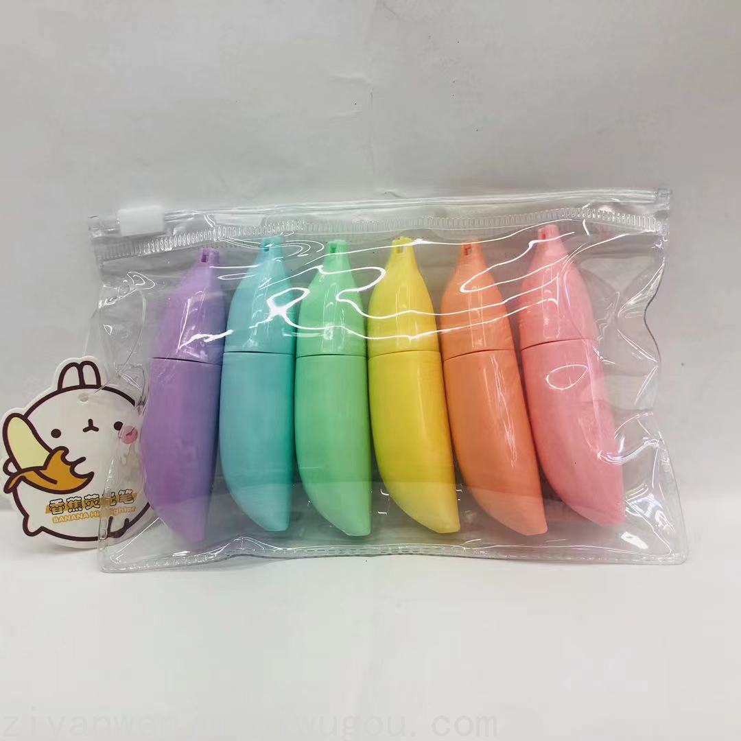 迷你香蕉造型荧光笔创意礼品笔彩色马卡龙色系荧光笔创意笔