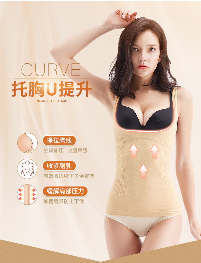 收腹无缝塑身托胸背心女产后塑身上衣 加强版U型束身高腰女装内衣