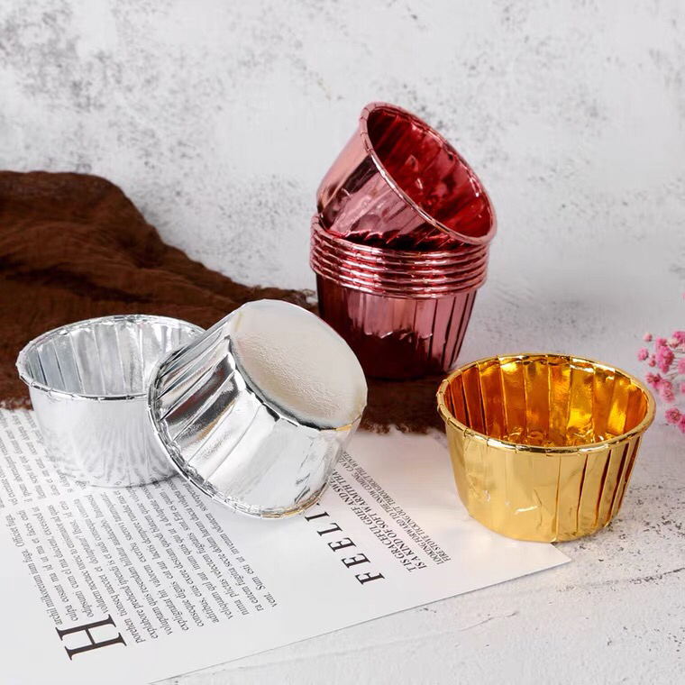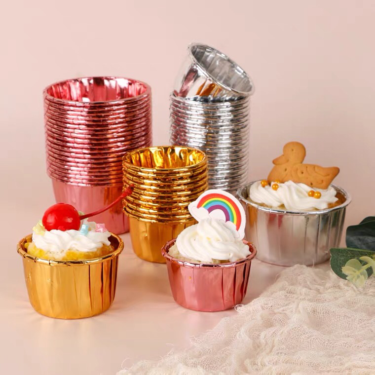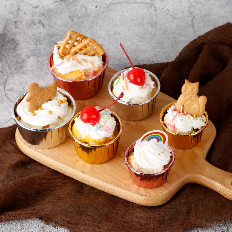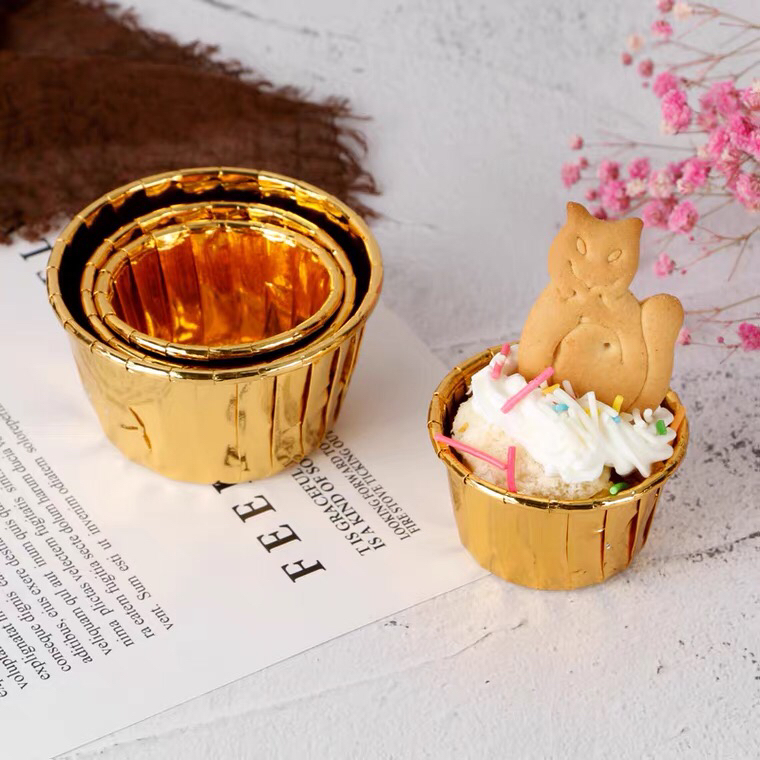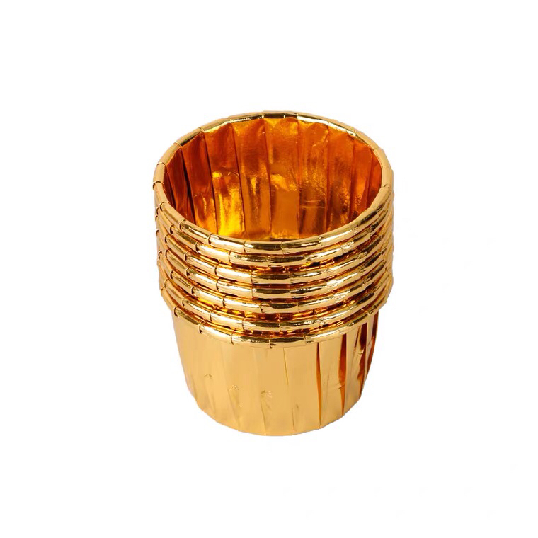 金色银色耐高温蛋糕卷边杯铝箔烤箱用马芬卷口淋膜纸杯纸托100只