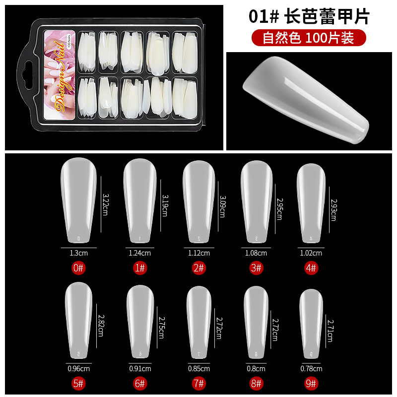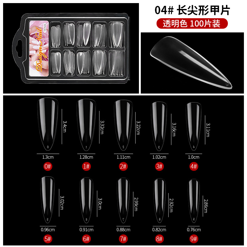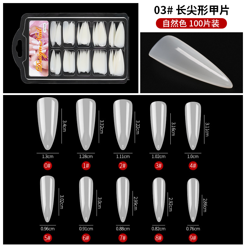 美甲甲片100片盒装 法式甲片免打磨杏仁水滴形自然色全贴延长甲片
