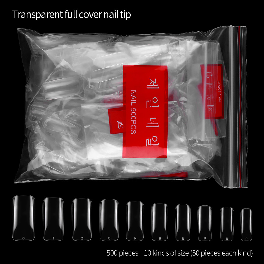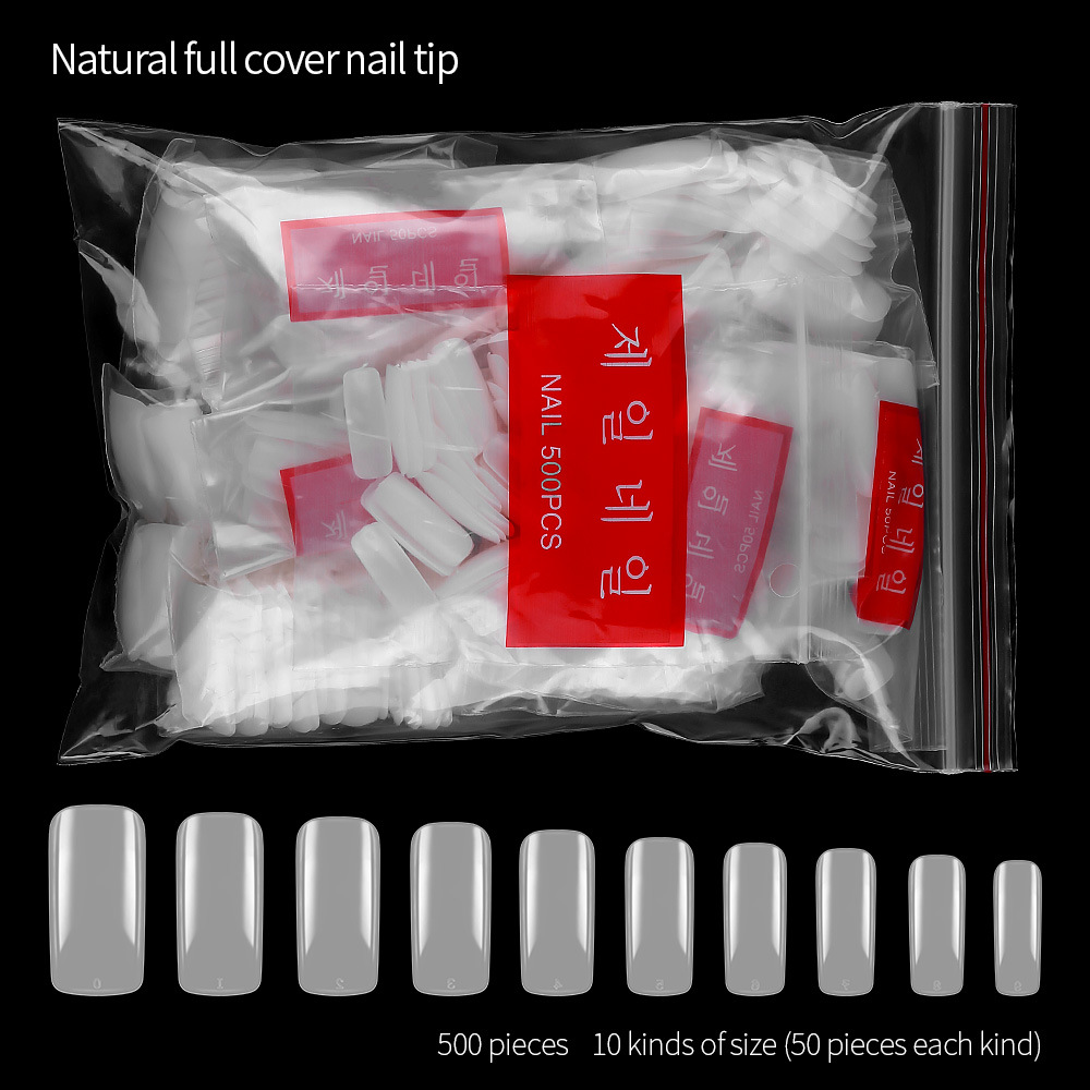 美甲自然色全贴甲片假指甲延长甲片500片袋装透明0-9号各50片