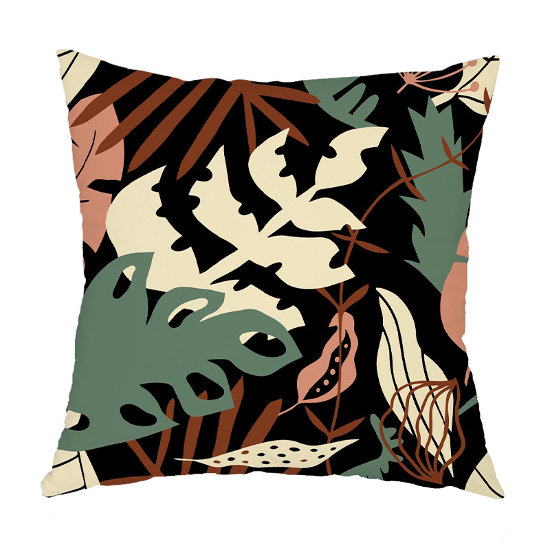 创意几何办公室靠垫亚马逊新款抱枕套抽象热带雨林植物沙发抱枕套