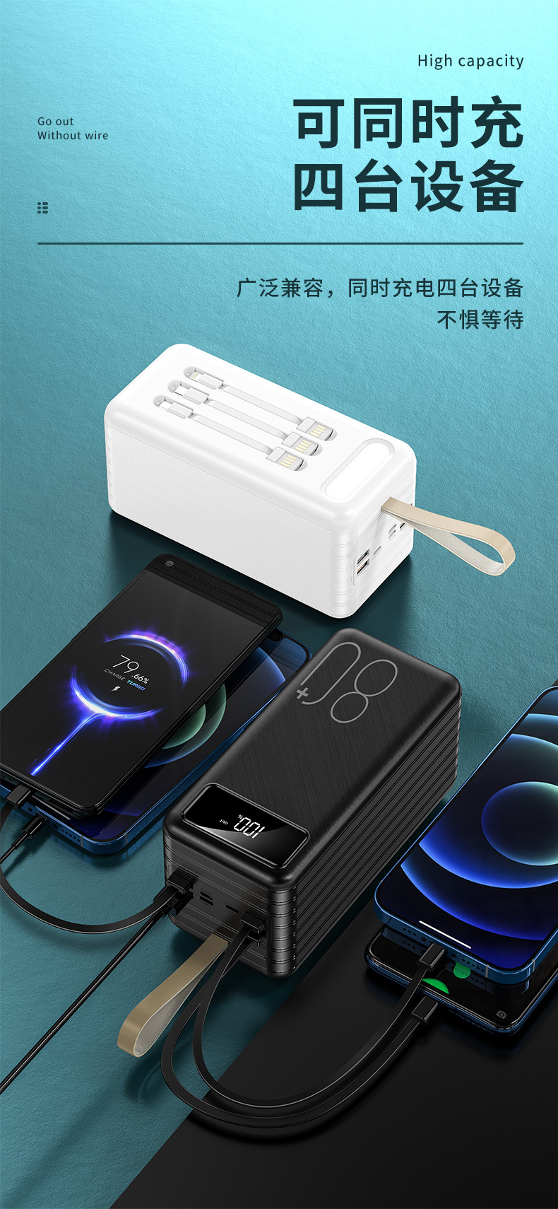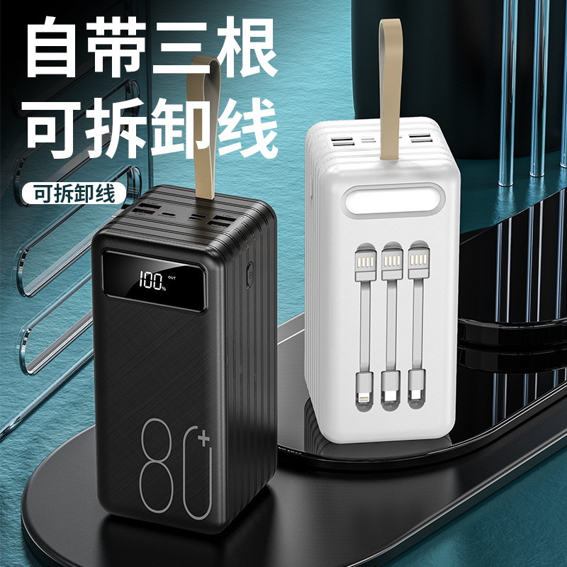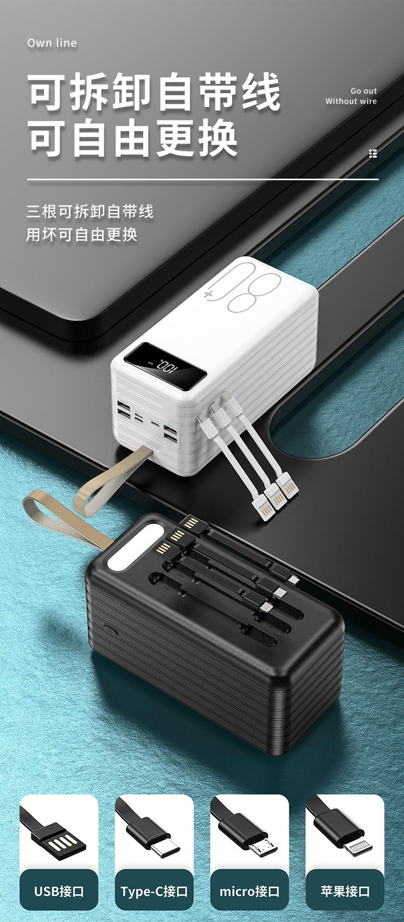 新款自带可拆三线充电宝自带线移动电源公司企业礼品赠品定制logo
