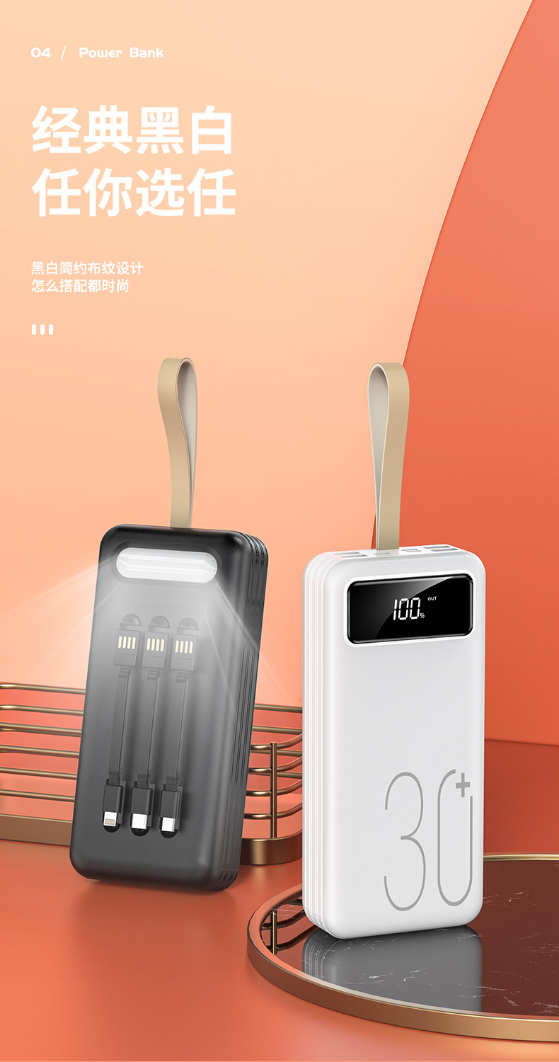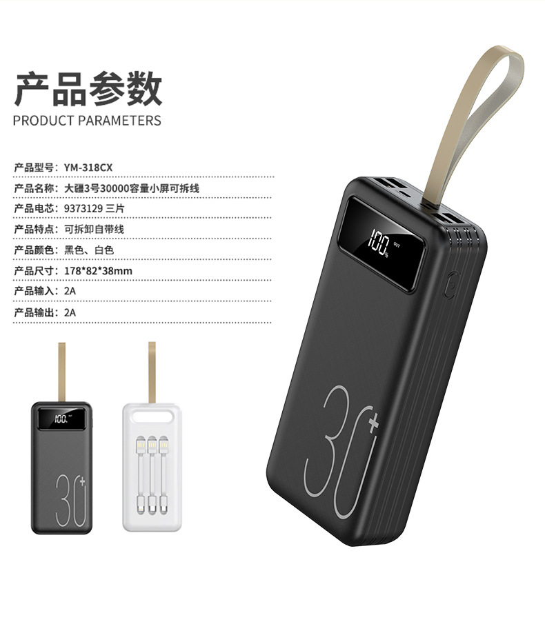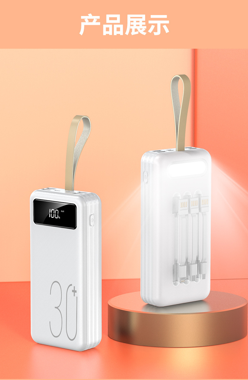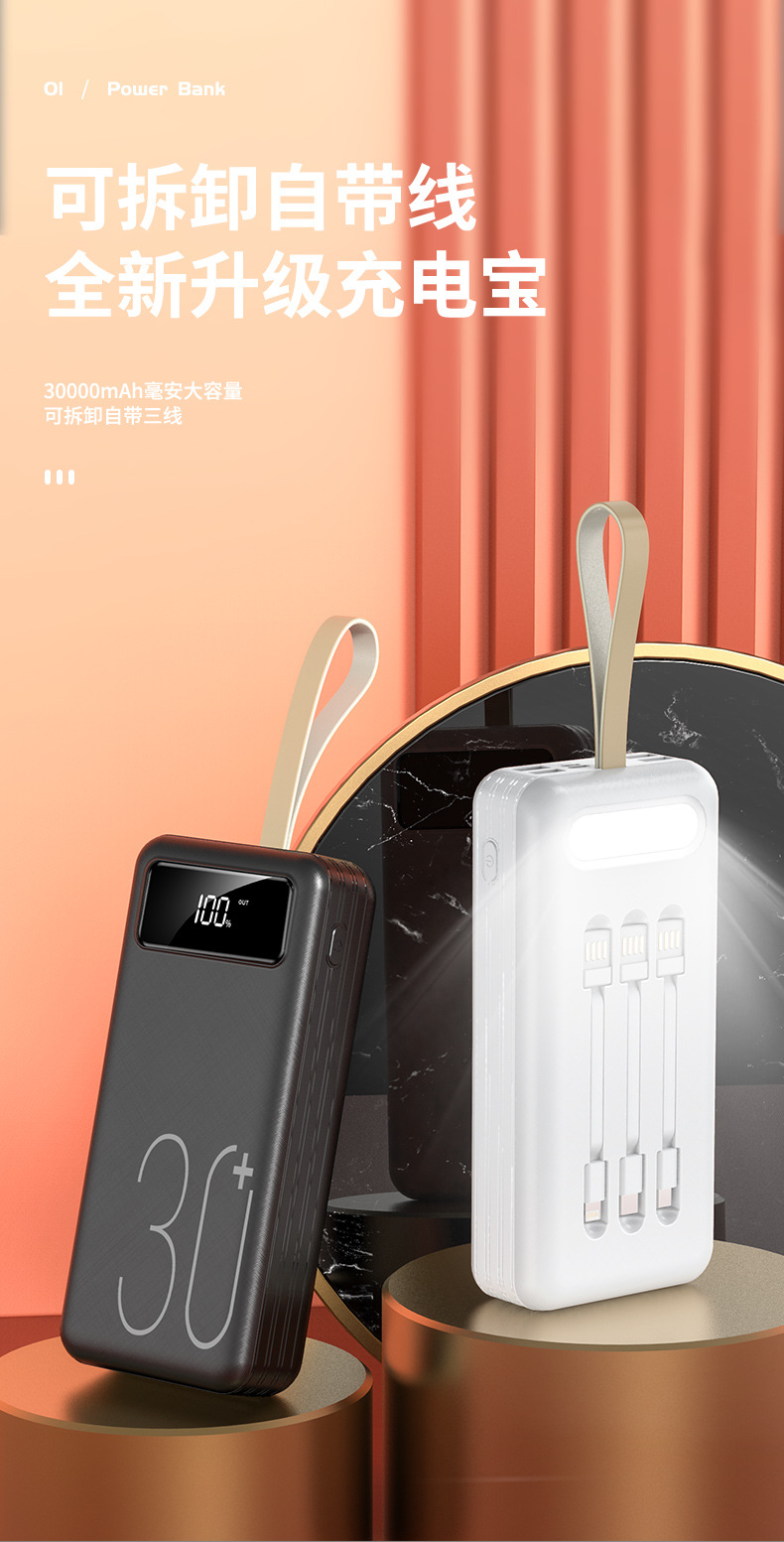 自带线可拆大容量30000毫安手机充电宝套料 礼品定制LOGO移动电源