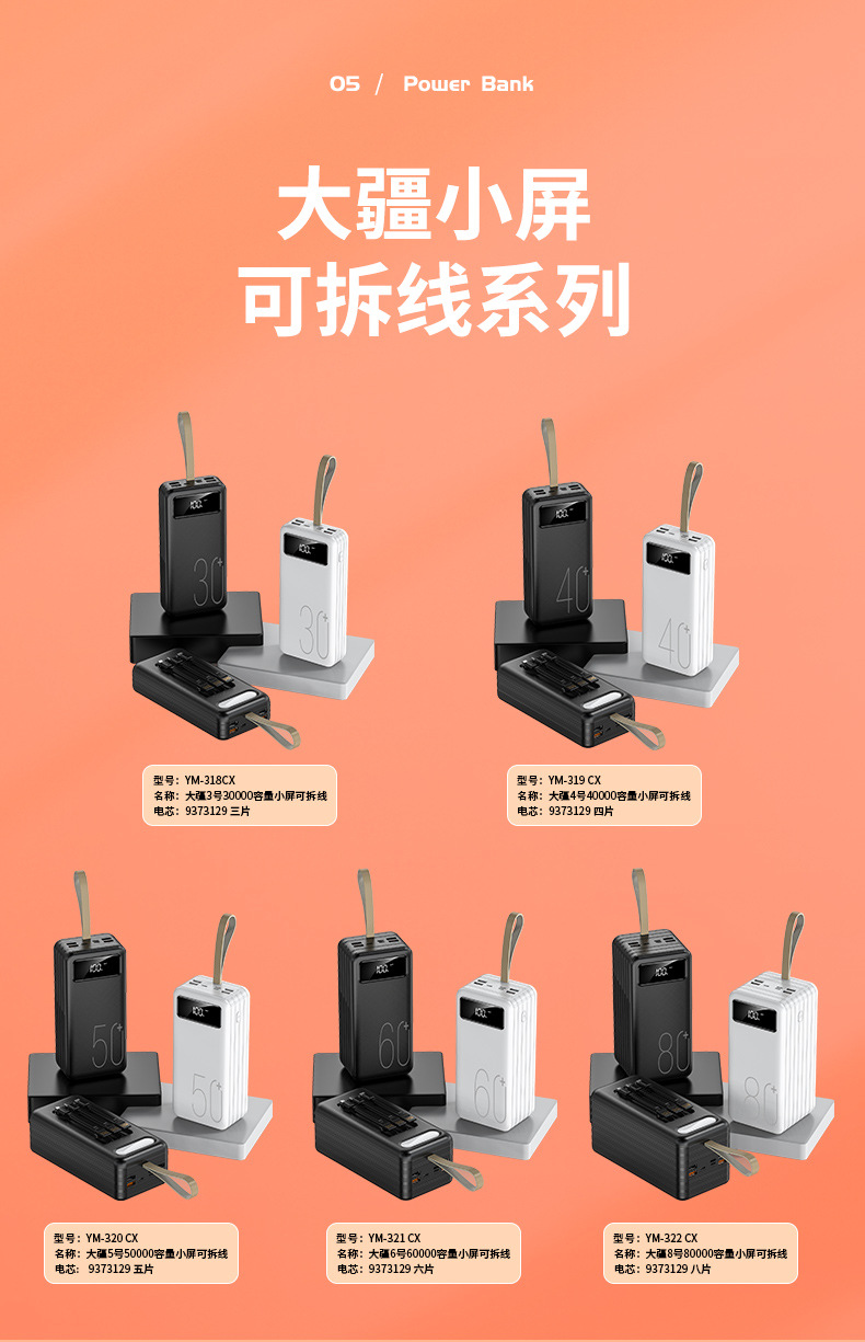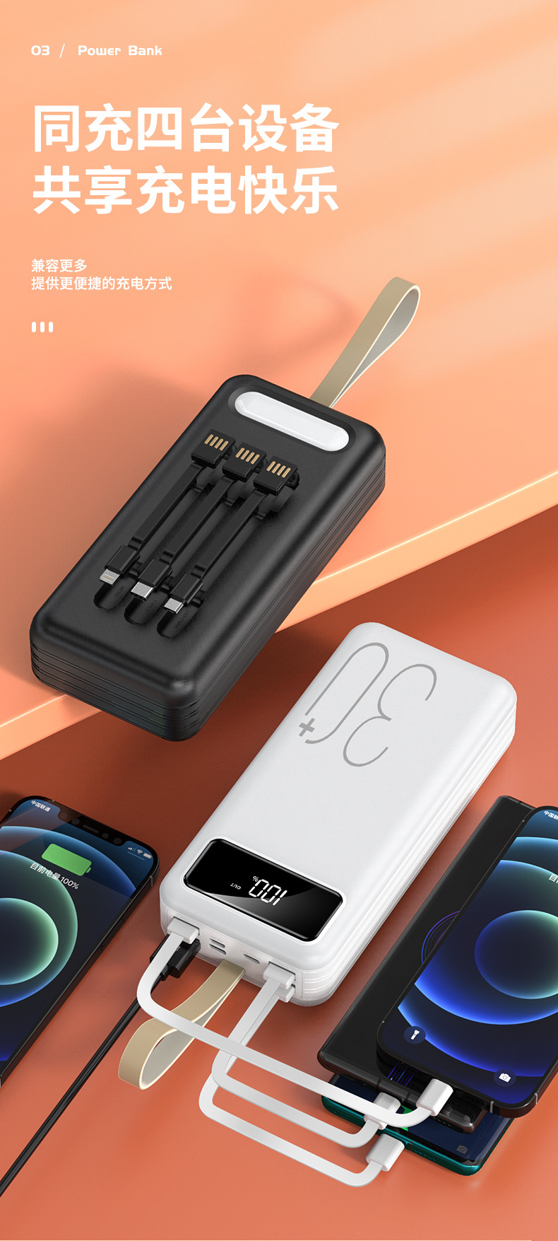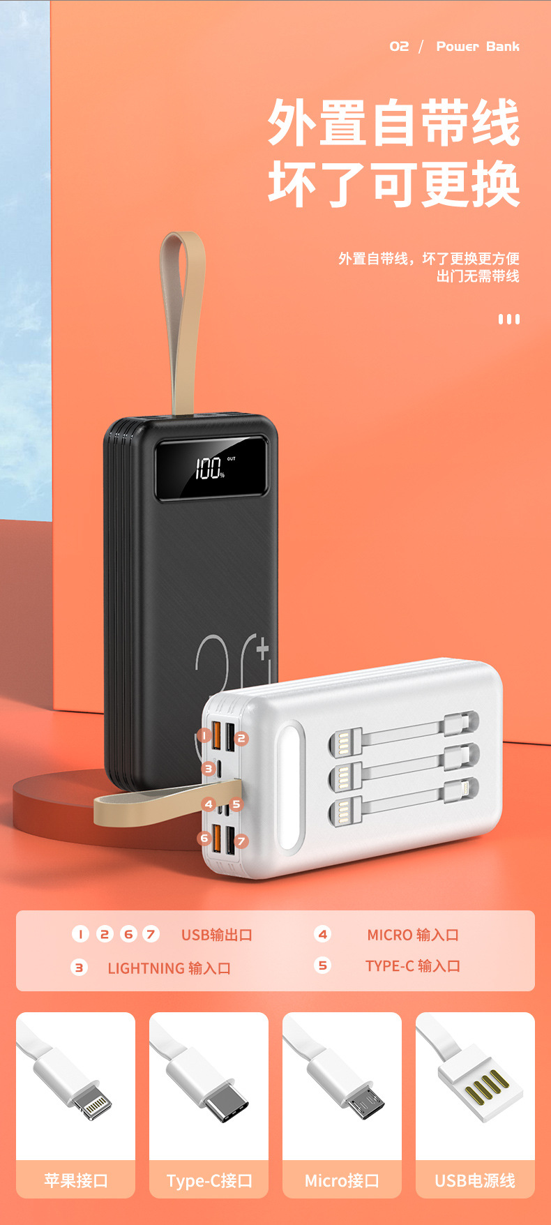 自带线可拆大容量30000毫安手机充电宝套料 礼品定制LOGO移动电源