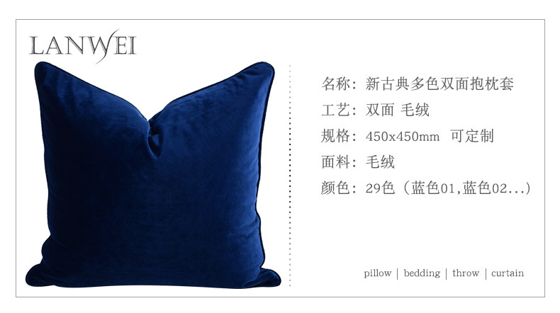 双面抱枕简约现代纯色毛绒靠包酒店样板间枕套沙发靠枕靠背垫床上