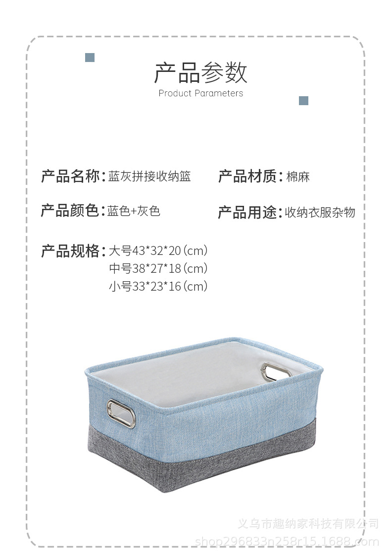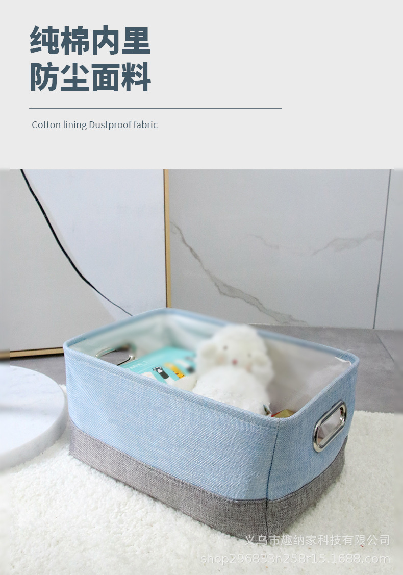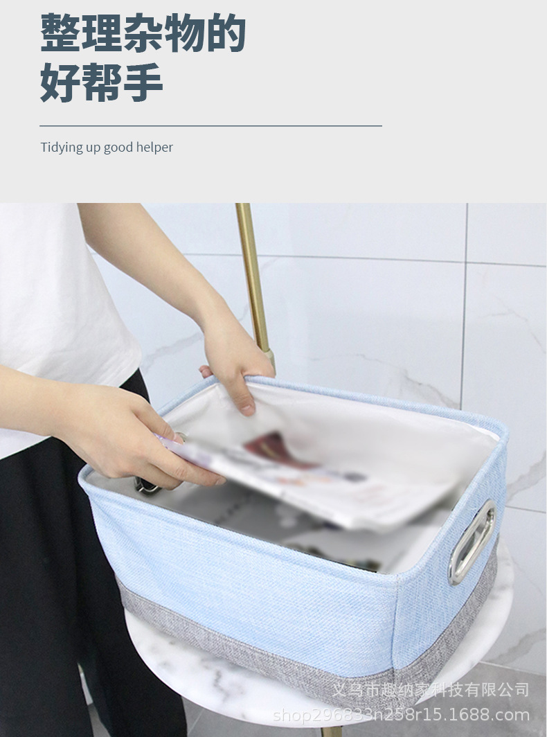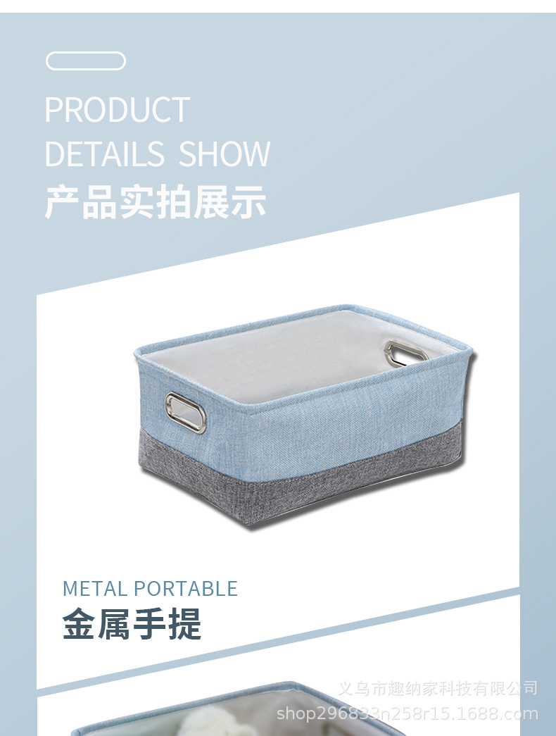 收纳盒可折叠桌面储物盒杂物整理盒金属手提拼接布艺家居日用外贸