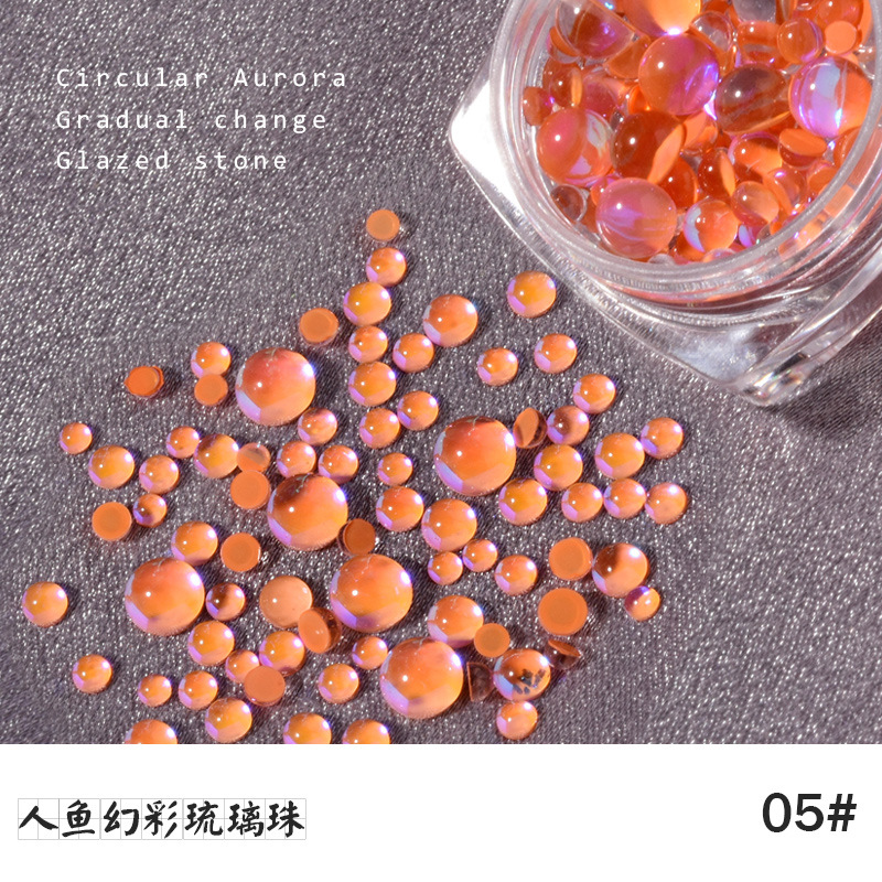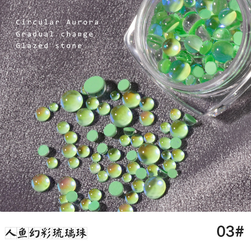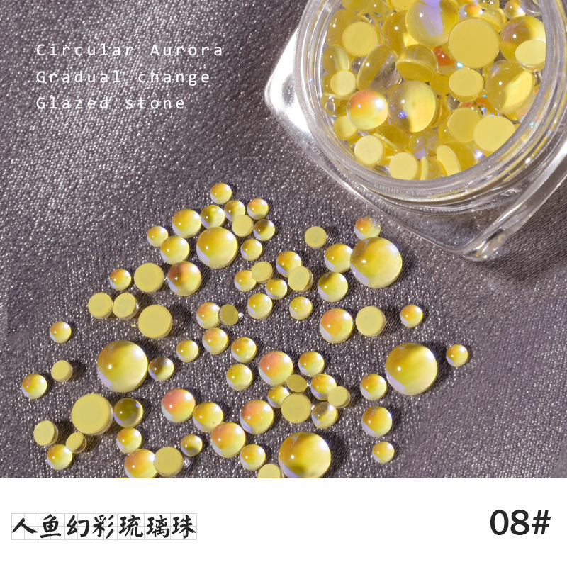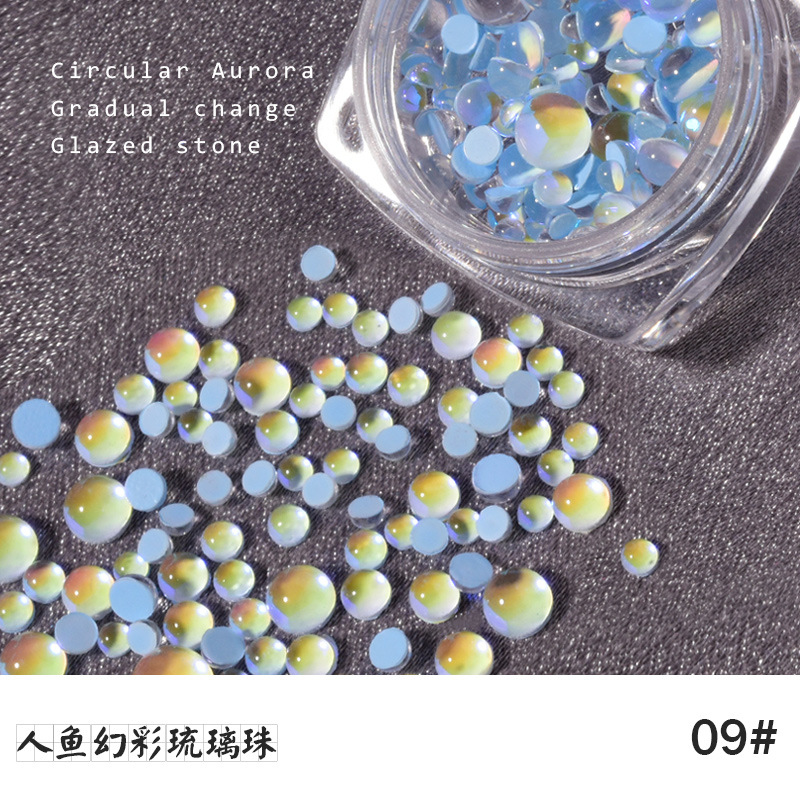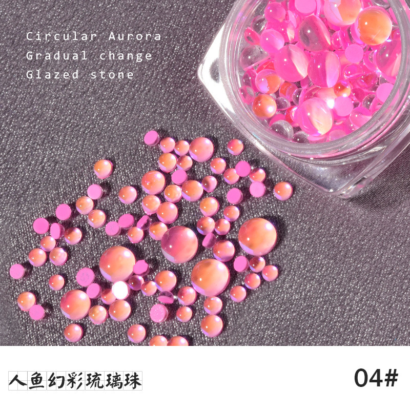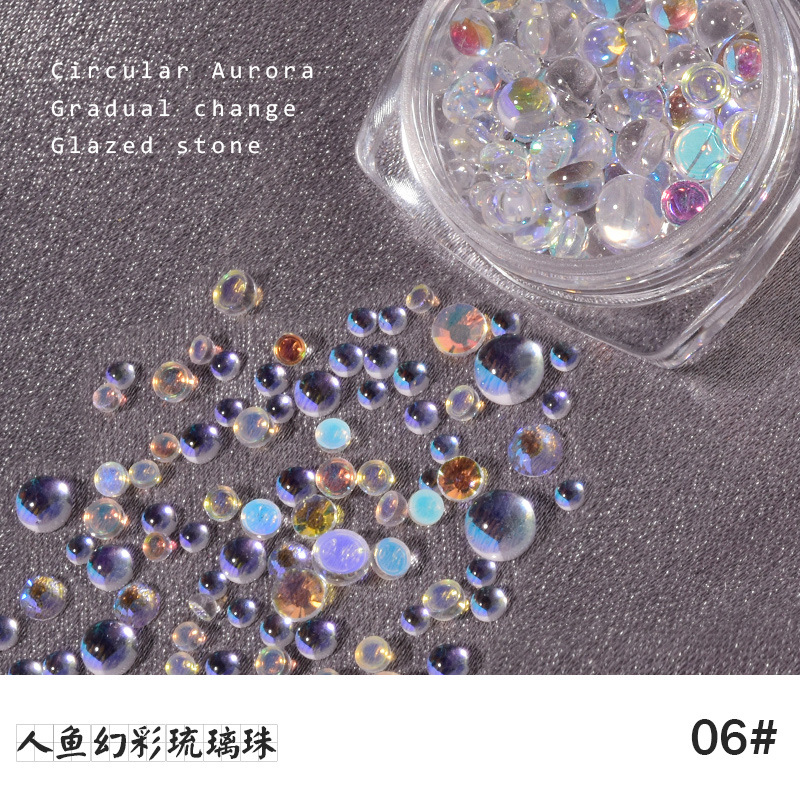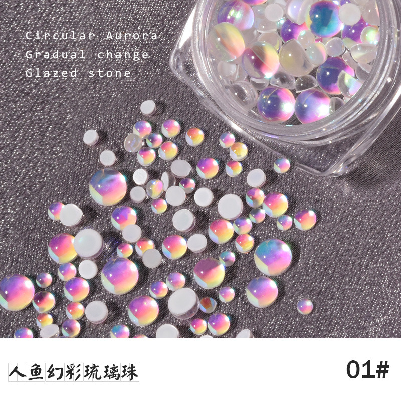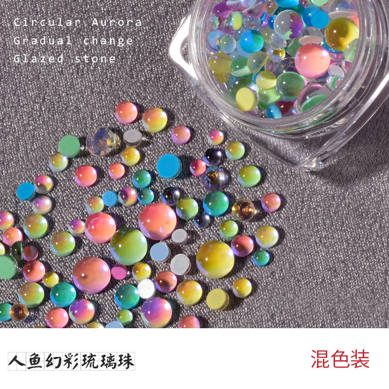 美甲饰品糖果色人鱼幻彩圆形玻璃水晶珠子混合装马卡龙指甲装饰钻