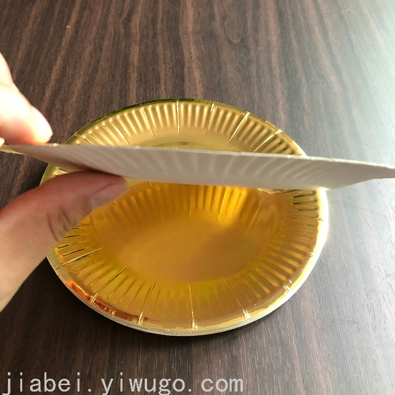 佳贝一次性纸盘金色圆形纸盘细纹圆盘加厚一次性圆盘可定制
