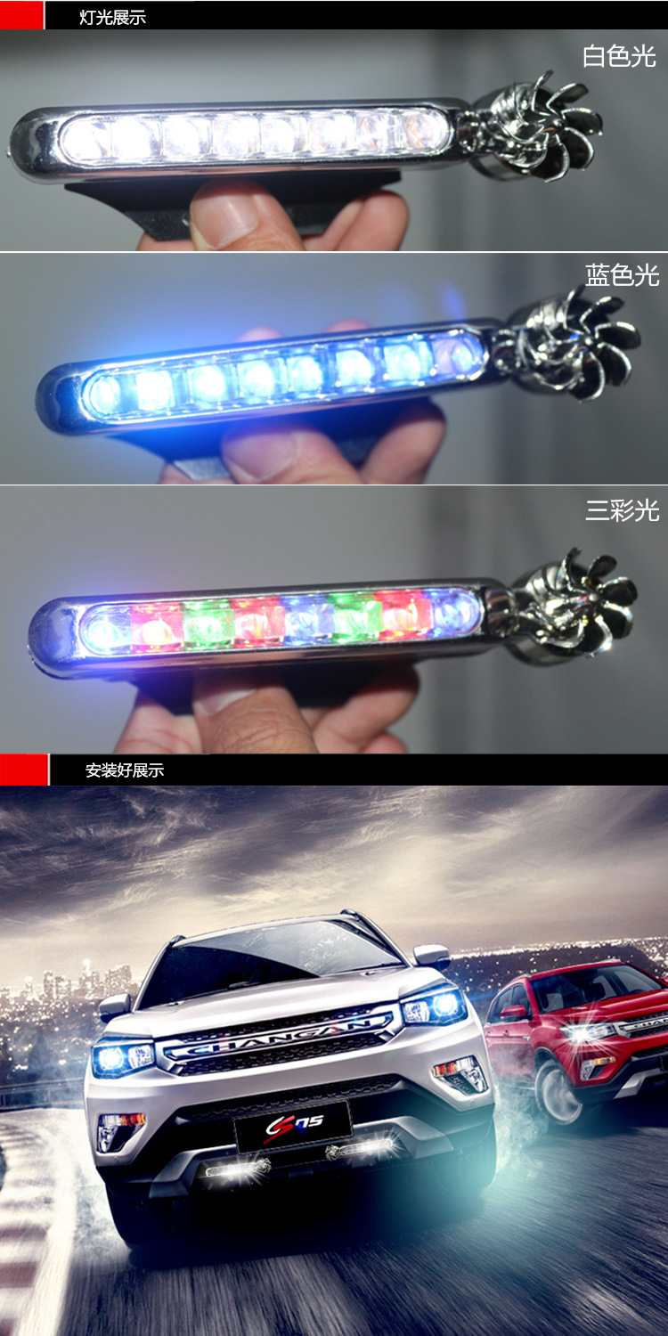 汽车中网灯 LED风力日行灯 车头辅助灯 风能灯 免安装