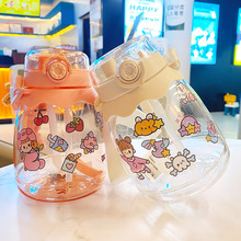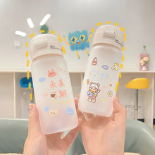 学生便携背带可爱大容量水杯塑料杯 网红户外运动水壶650ml少女心
