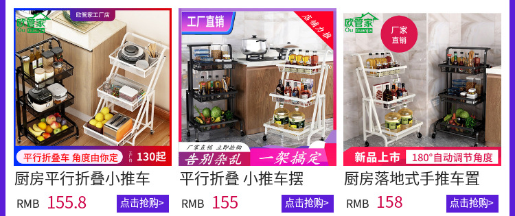 厨房落地式手推车置物架 多功能平行折叠蔬菜水果收纳篮360度旋转