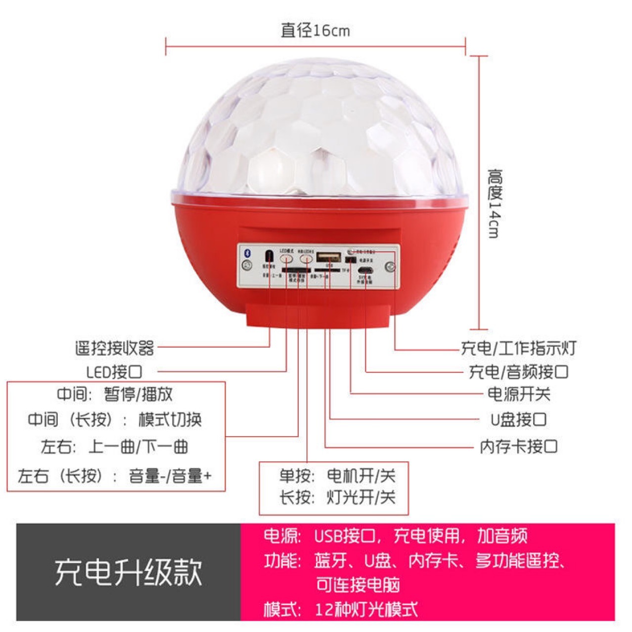 充电款蓝牙音箱彩灯新款充电魔球七彩小转灯蓝牙大魔球