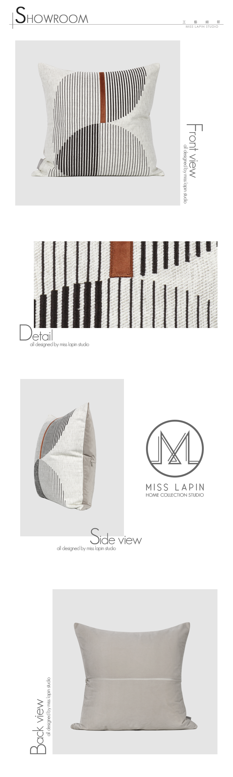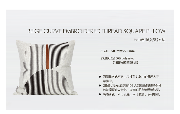 样板房沙发垫抱枕靠枕现代米白色曲线绣线方枕