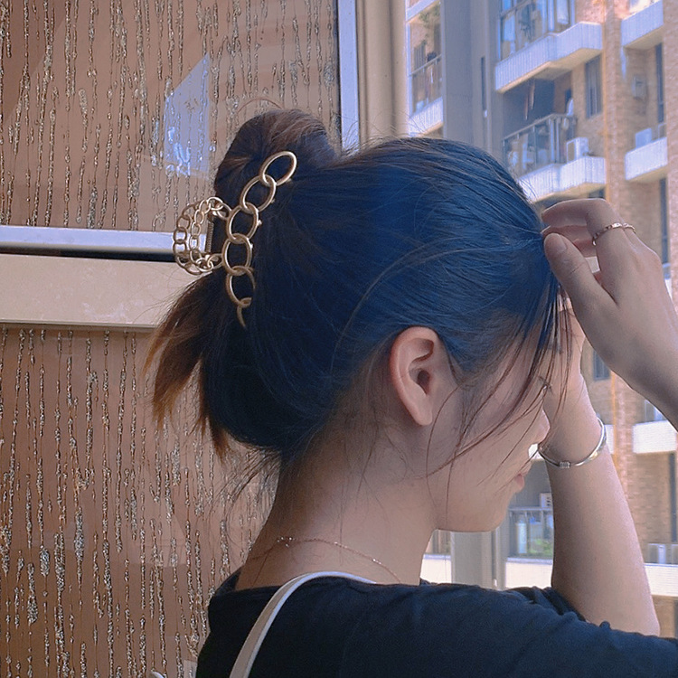 韩国东大门气质哑光金属镂空圆环后脑勺夹顶夹冷淡风简约盘发抓