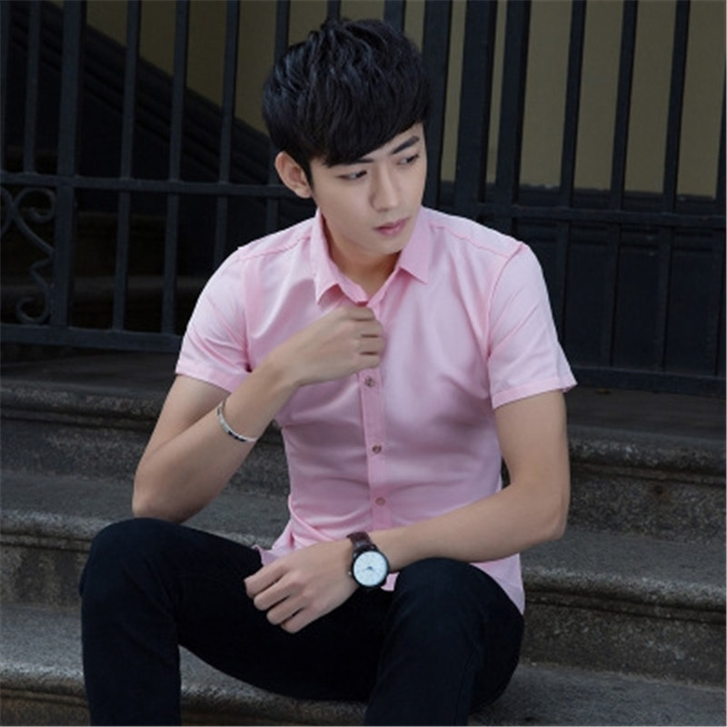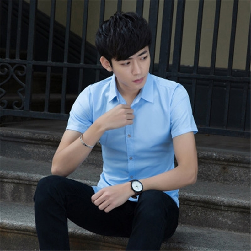 夏季白衬衫男 纯色短袖衬衣男青年修身商务男装 一件代发