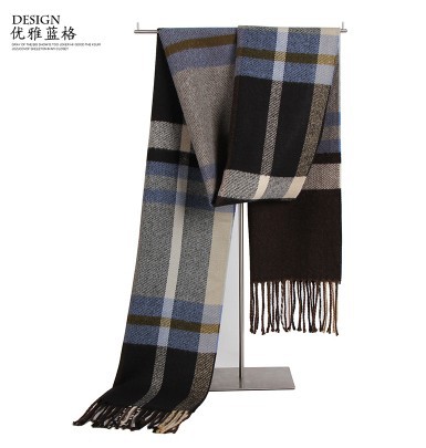 新款冬季围巾男士围巾商超礼品围脖厚正品英伦格子保暖围巾格子围