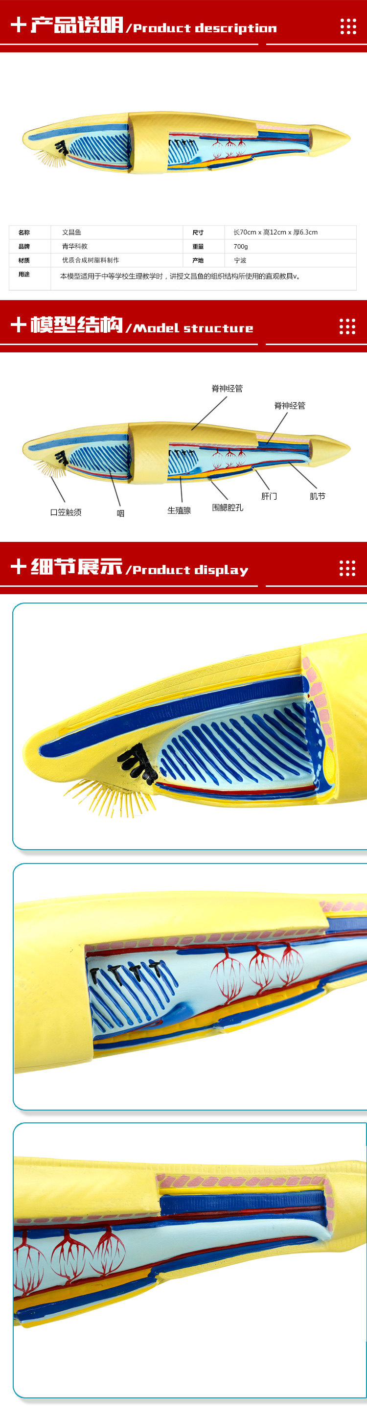 文昌鱼生物教学教具模型,精准还原解剖结构,助力生物课堂生动教学。