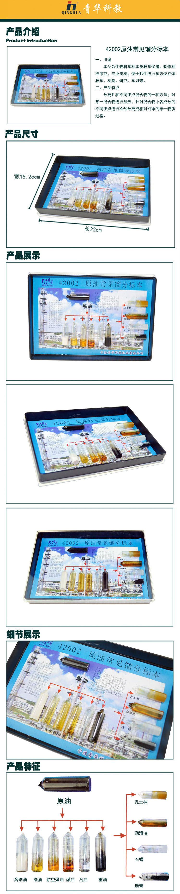 原油常见馏分标本,专为初高中化学教学设计,展示汽油、煤油等馏分。