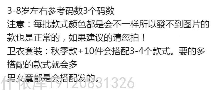 | 3-8 years old, size 3 matching(3-8岁,三码搭配) | USD $0.0 | 50000 set available |