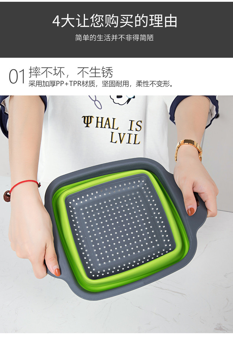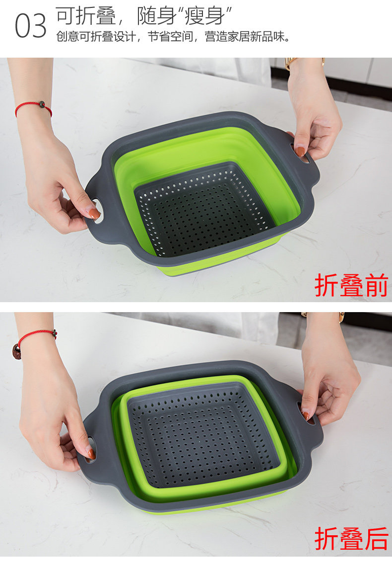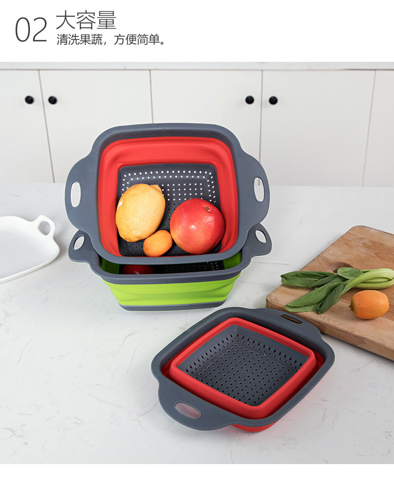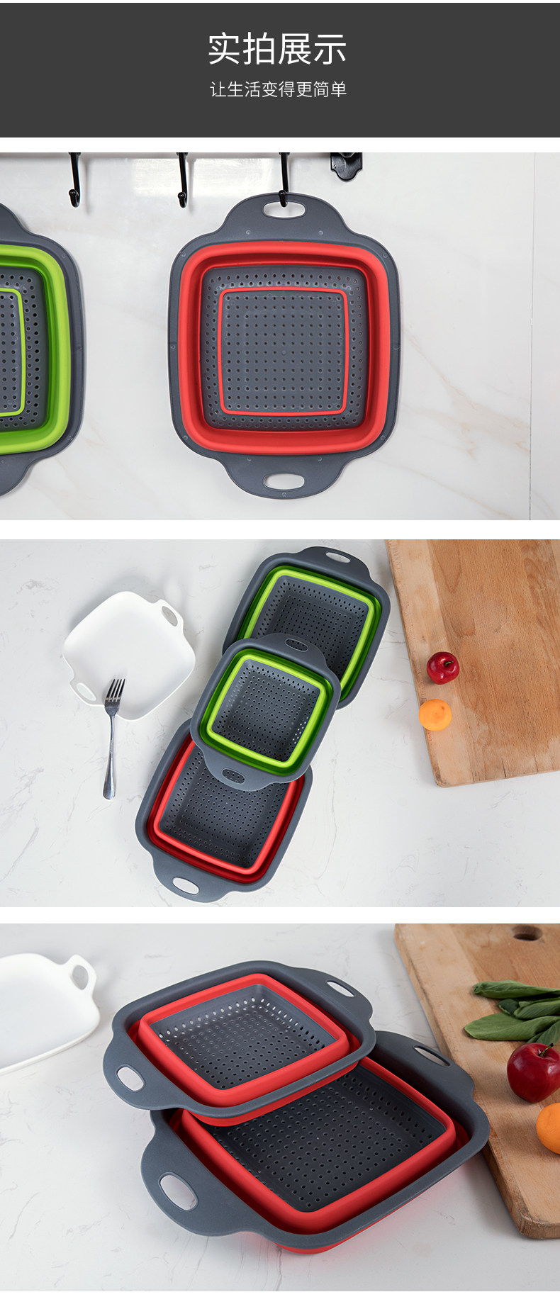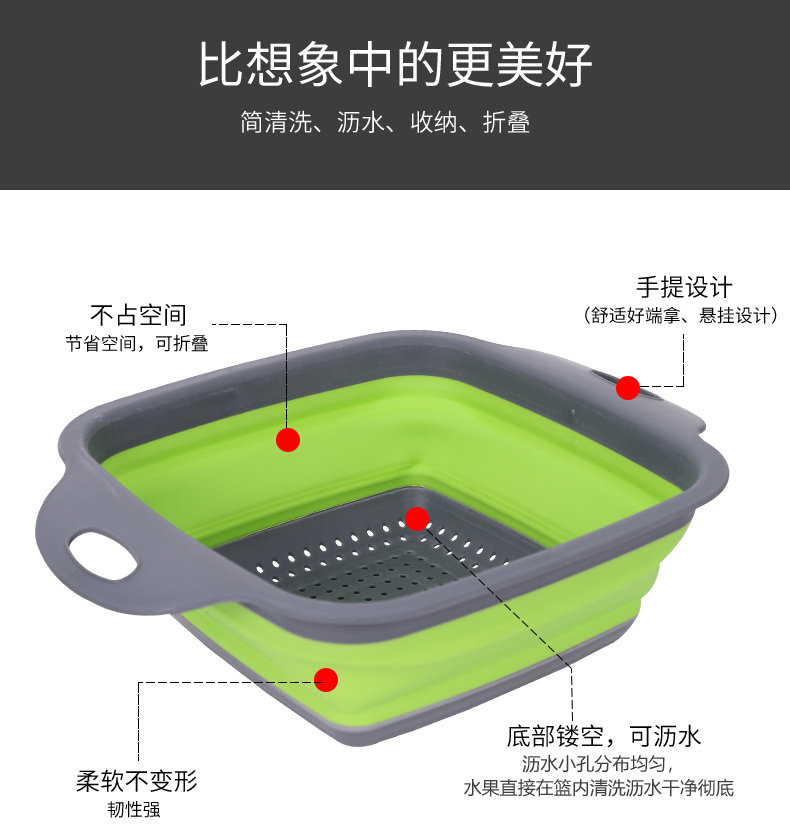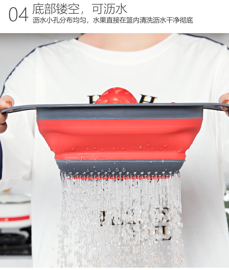沥水篮洗水果盘果篮洗菜盆创意可折叠置物架硅胶厨房家用收纳神器