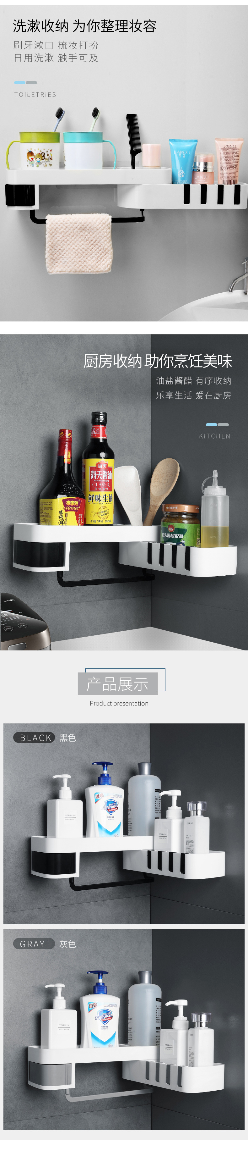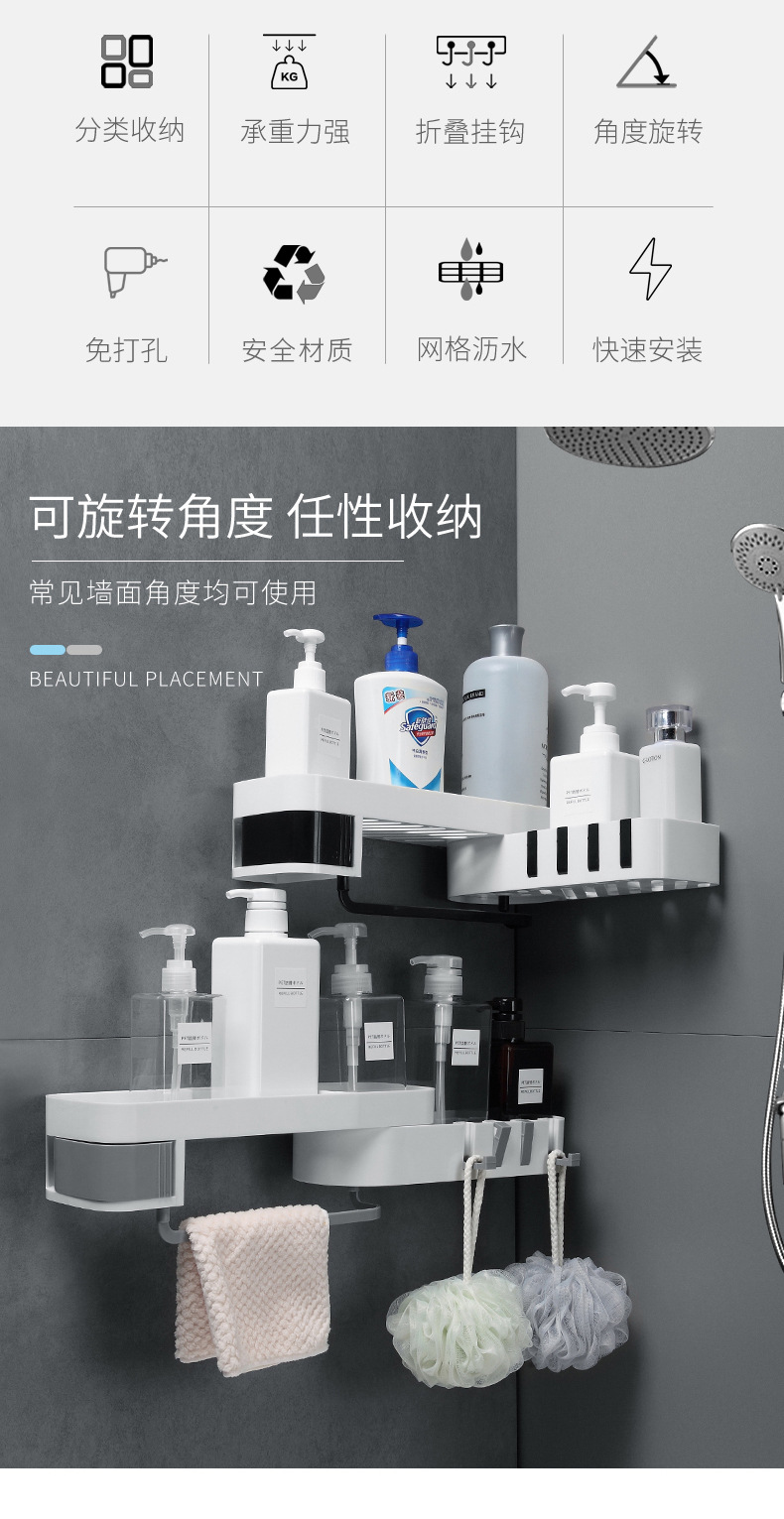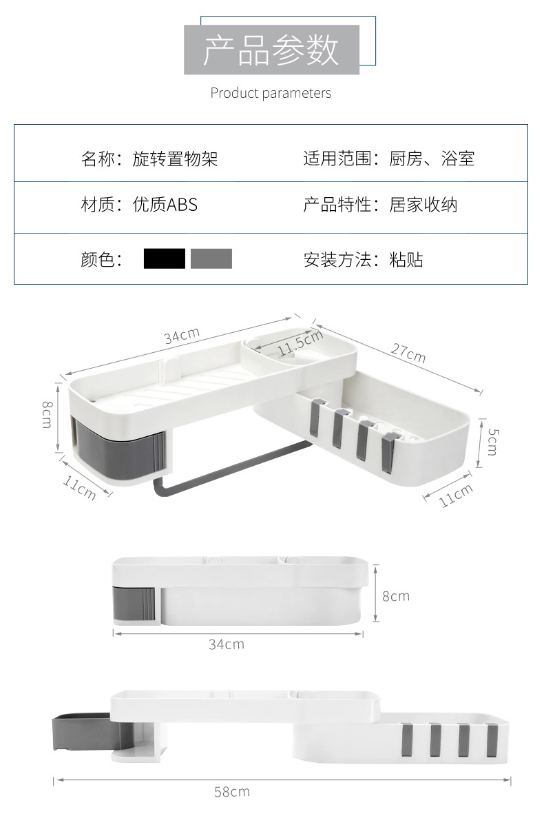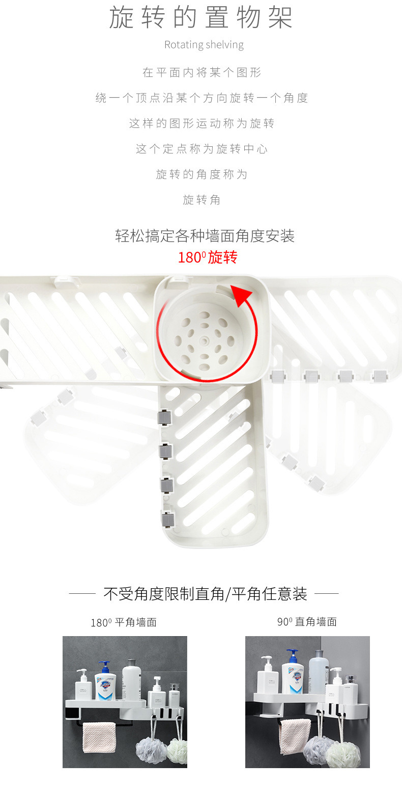 商品名称:厨房浴室壁挂式可旋转可转角收纳沥水置物架