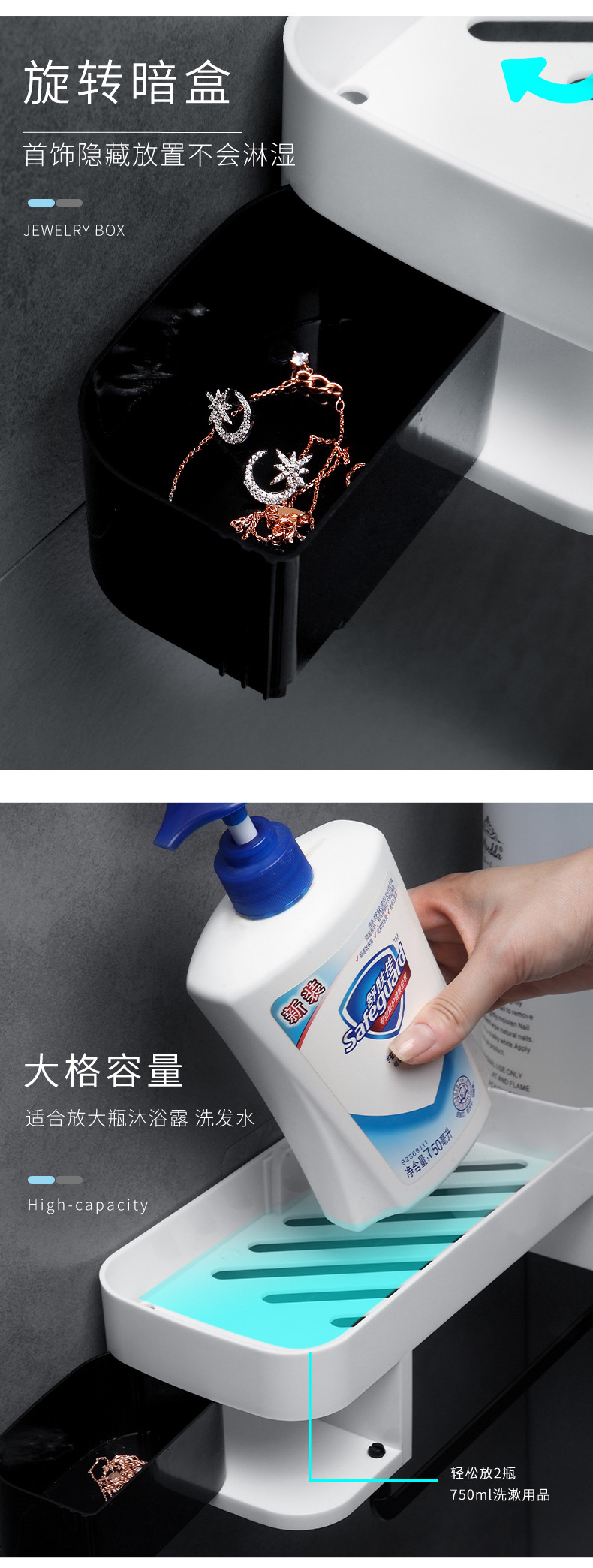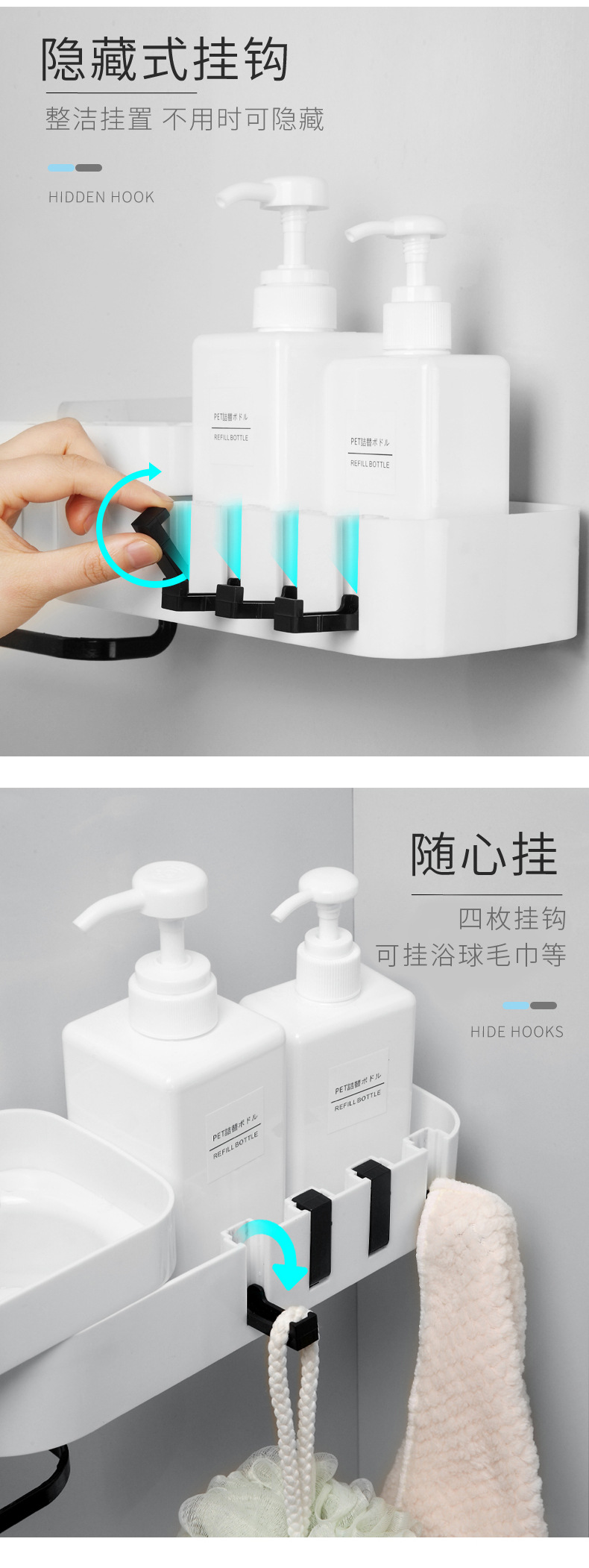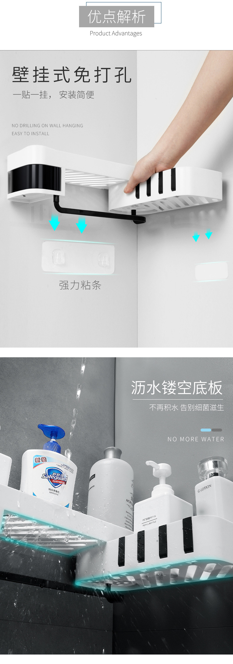 商品名称:厨房浴室壁挂式可旋转可转角收纳沥水置物架