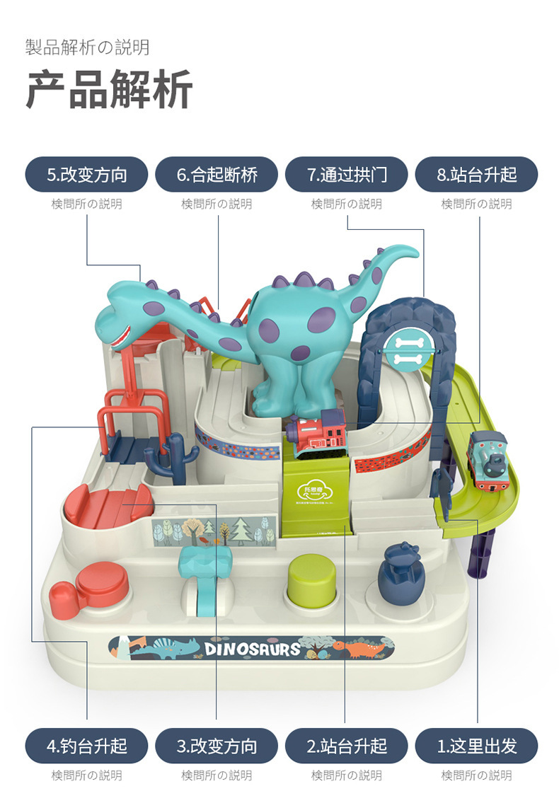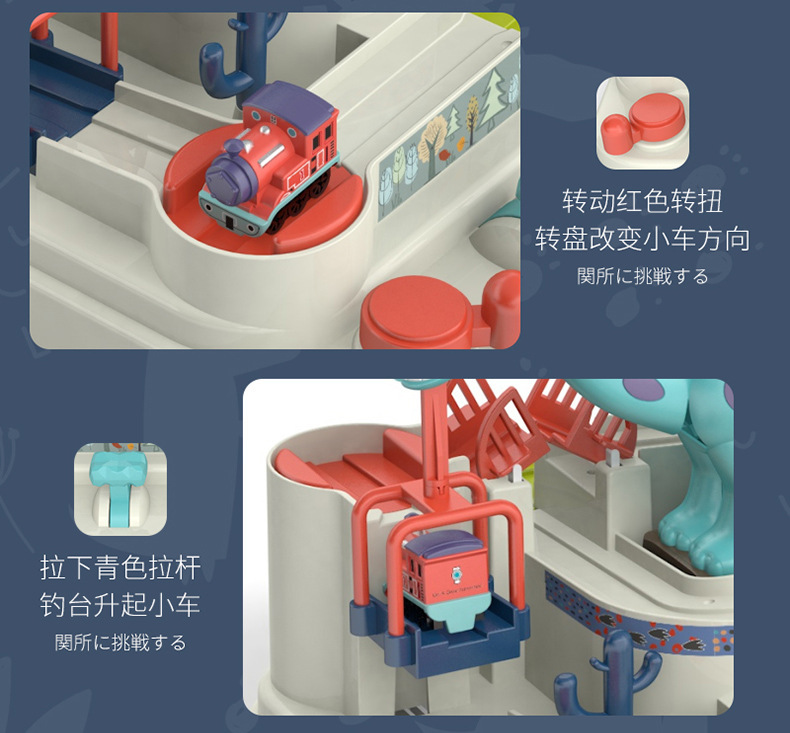 托思奇 跨境恐龙乐园闯关大冒险6关卡手动滑行轨道车儿童玩具现货