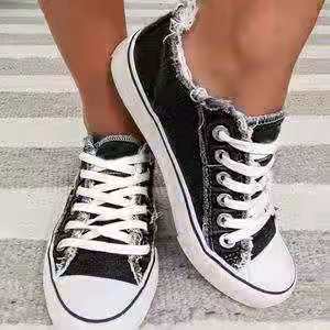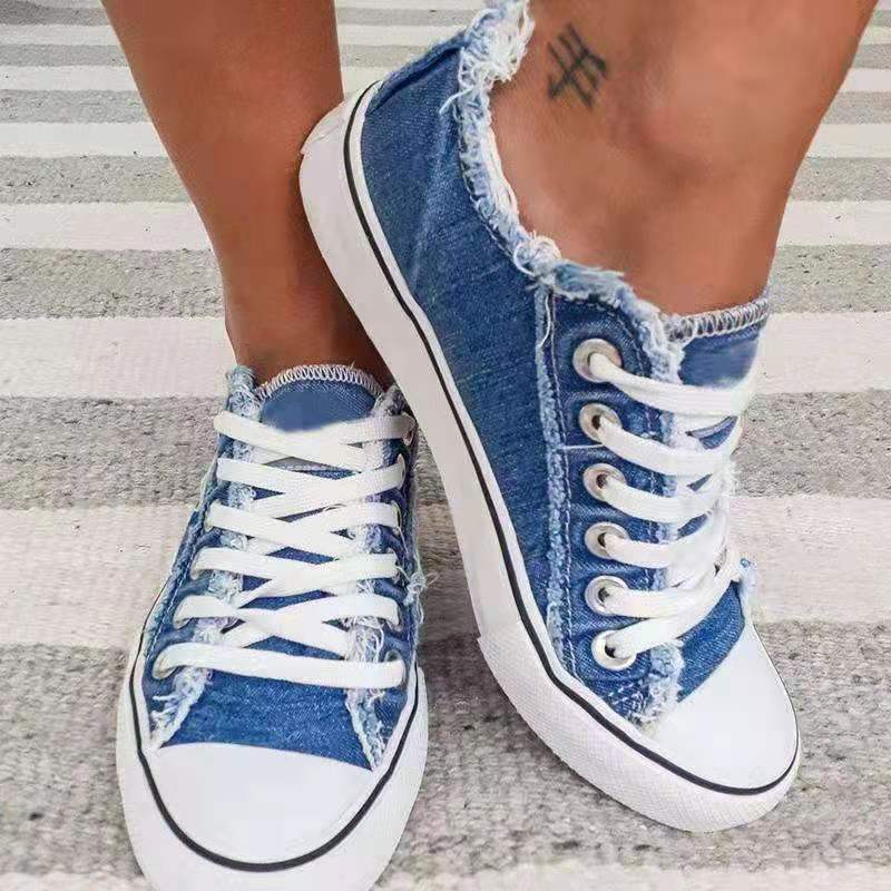 新款2021春秋单鞋欧美牛仔帆布鞋低帮系带大码女鞋好搭学生单鞋女