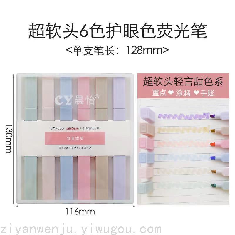 晨怡荧光笔超软笔头护眼色荧光笔记号手帐笔学生划重点标记笔