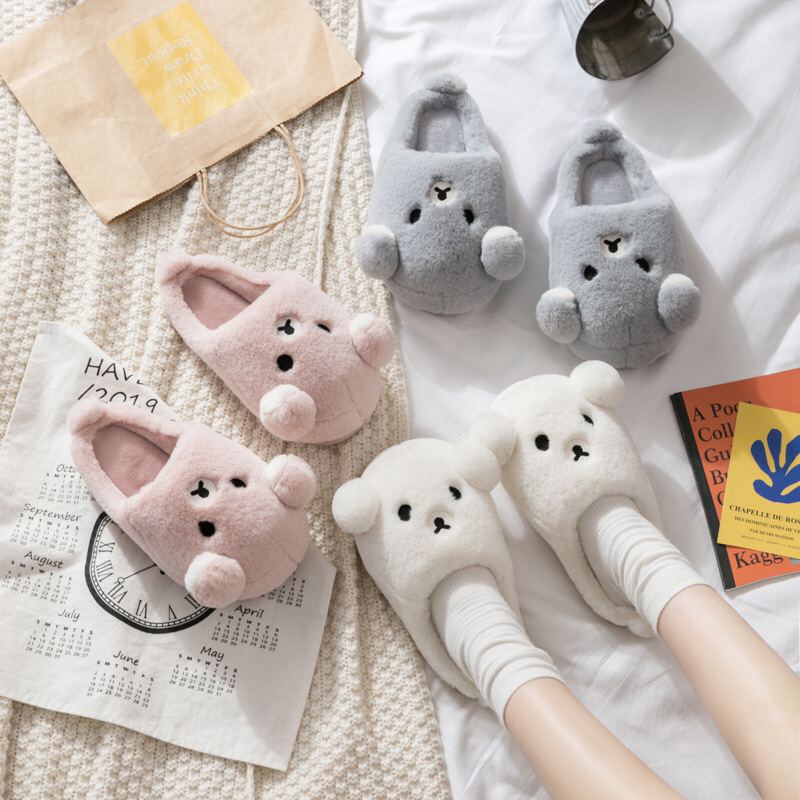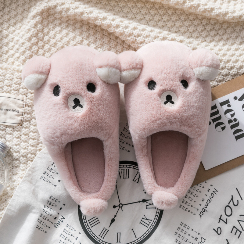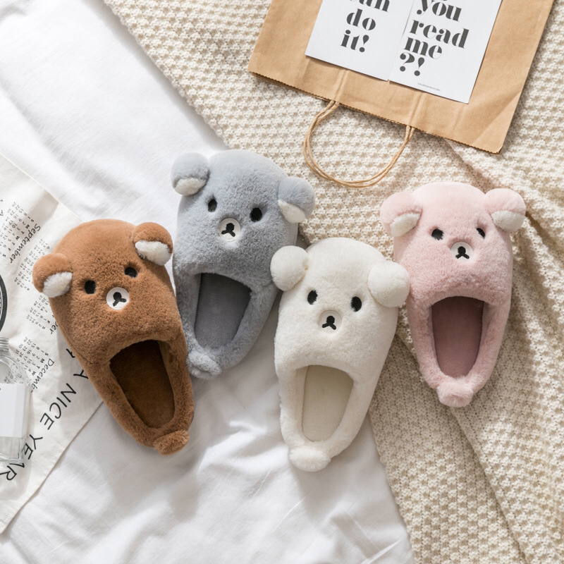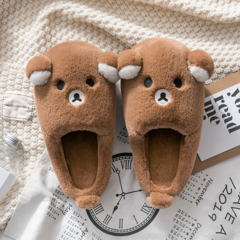 新款秋冬儿童棉拖鞋男女童冬季毛毛保暖棉鞋一家三口可以小熊棉拖