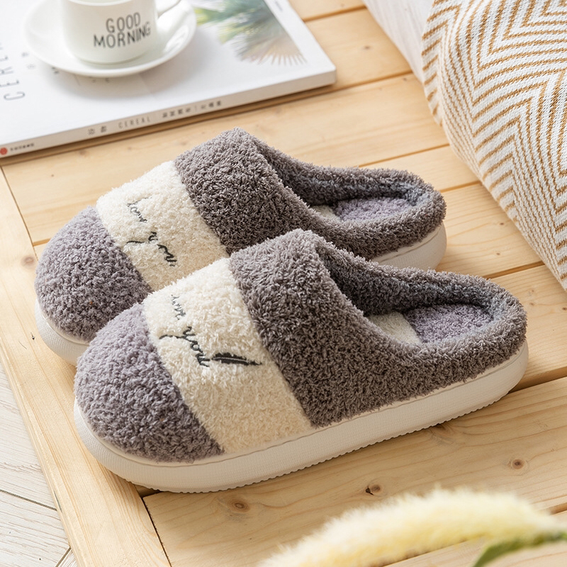秋冬新款时尚棉拖鞋女高跟厚底家居拼接韩版保暖拖鞋防滑防潮情侣