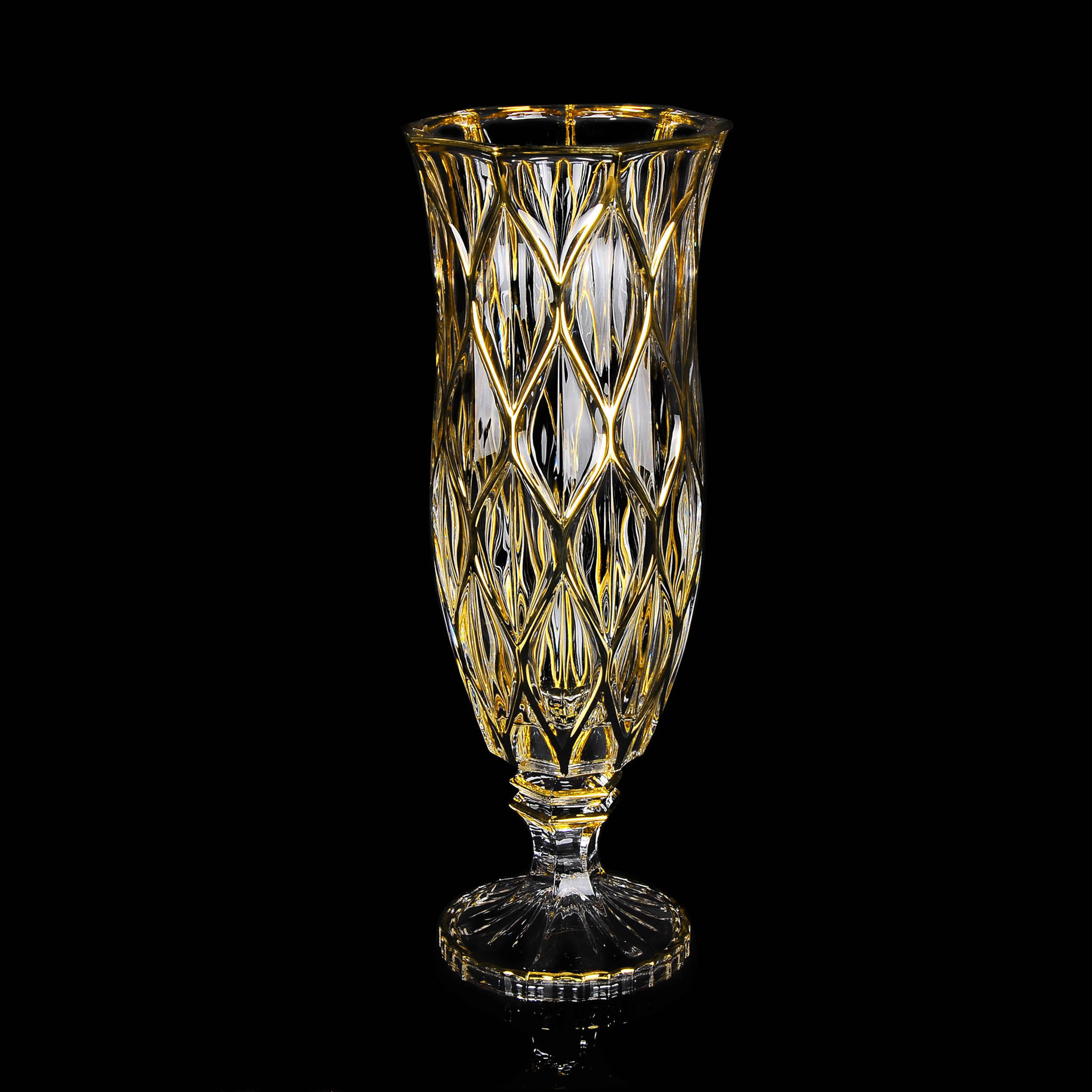 欧式真金描边水晶玻璃花瓶落地花瓶客厅花瓶摆件装饰花器