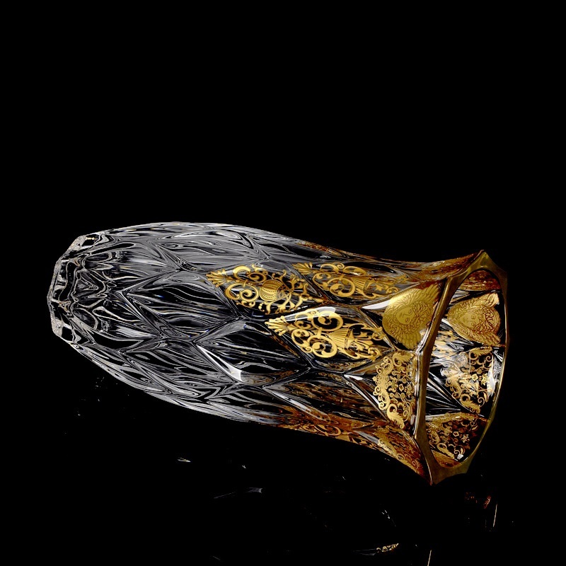 水晶玻璃花瓶 客厅插花摆件 加厚玻璃容器 描金轻奢欧式落地花瓶