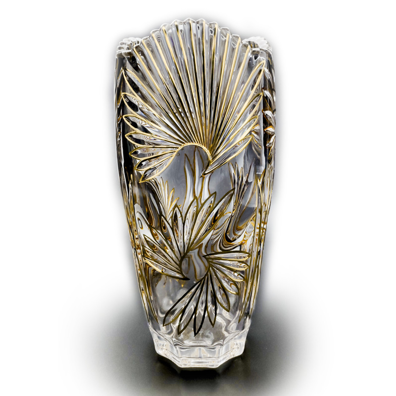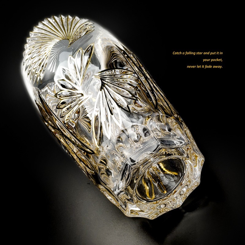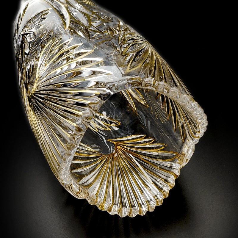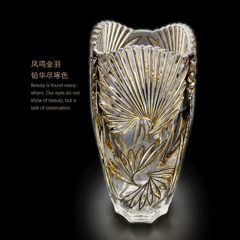 鼓型凤羽纹描真黄金线水晶玻璃花瓶水培植物花器