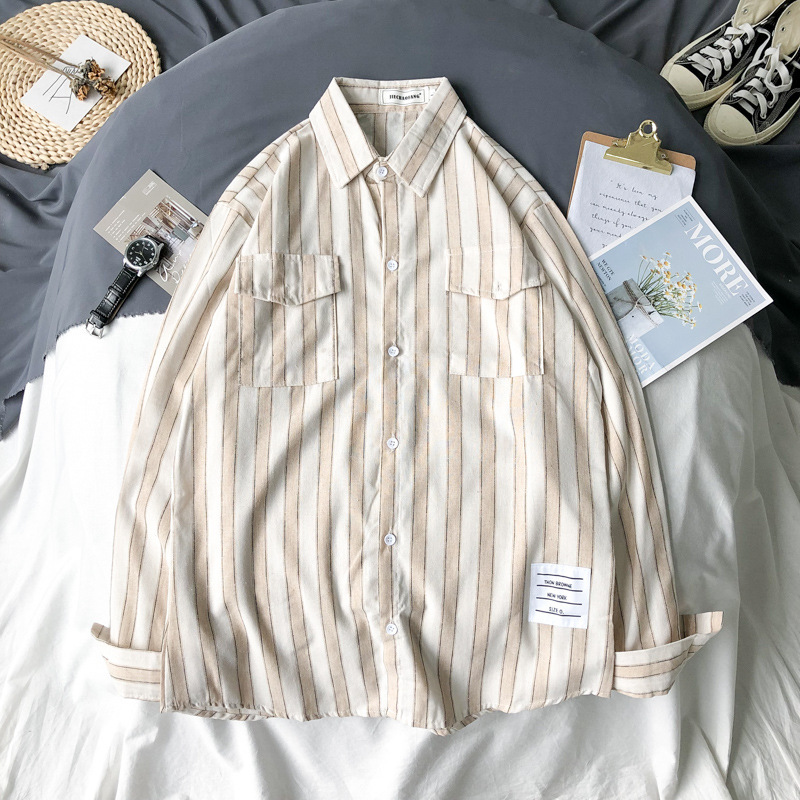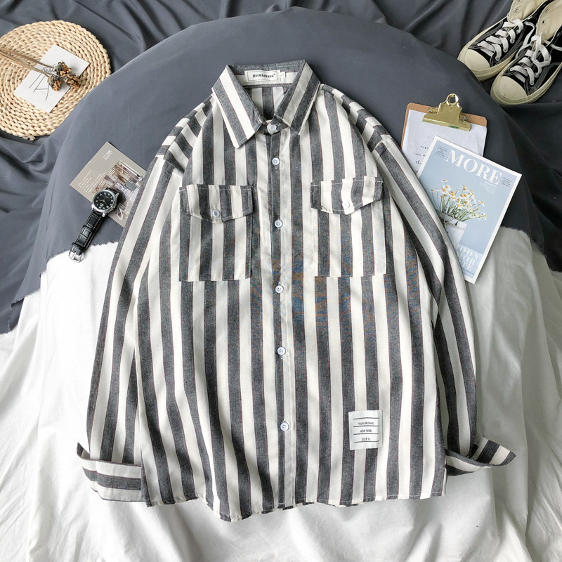 痞帅条纹长袖衬衫男女韩版潮流休闲百搭ins港风日系秋季情侣衬衣