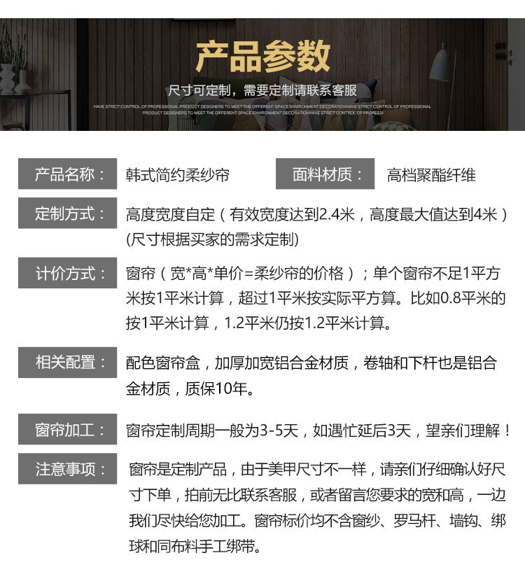 | Soft Gauze Curtain(柔纱帘) | USD $6.28 | 5000 square available |