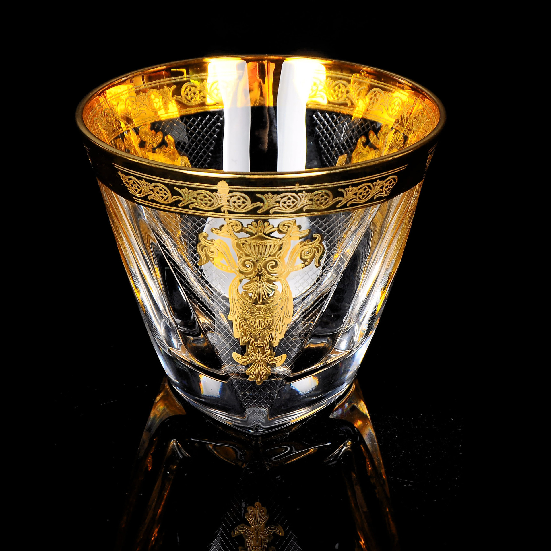 创意洋酒杯白酒杯水晶威士忌酒杯真金花纸美杜莎(6只/套)蓝盒装