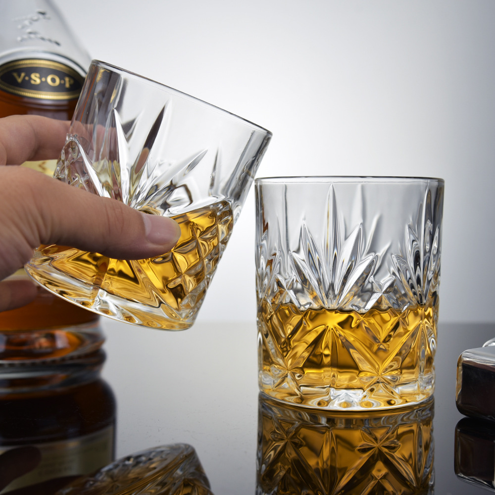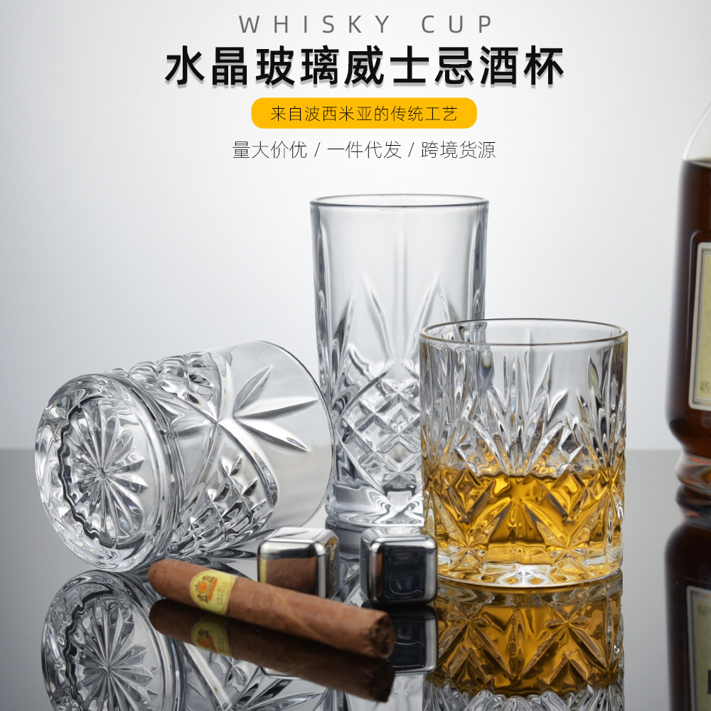 亚马逊欧式圆柱形啤酒杯 水晶玻璃简约威士忌杯 现代艺术酒杯套装
