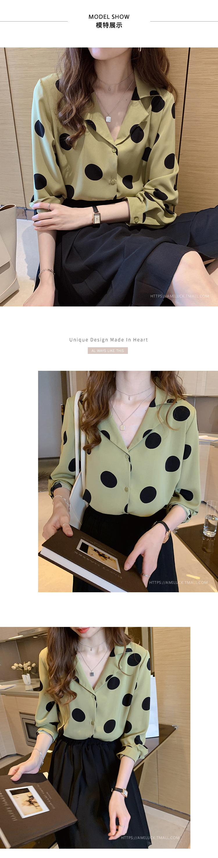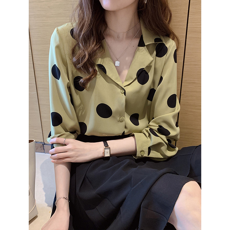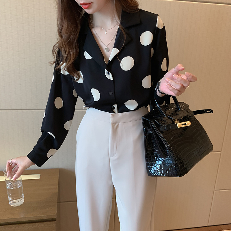 早秋新品波点衬衫女港味复古上衣设计感小众轻熟雪纺衬衣