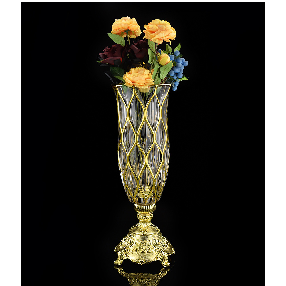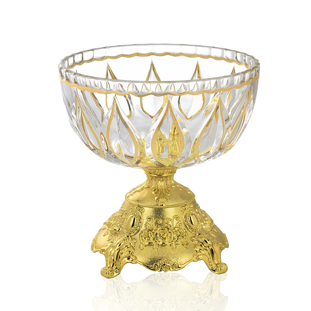 水晶玻璃高脚描金果盘 欧式轻奢五金底座装饰摆件