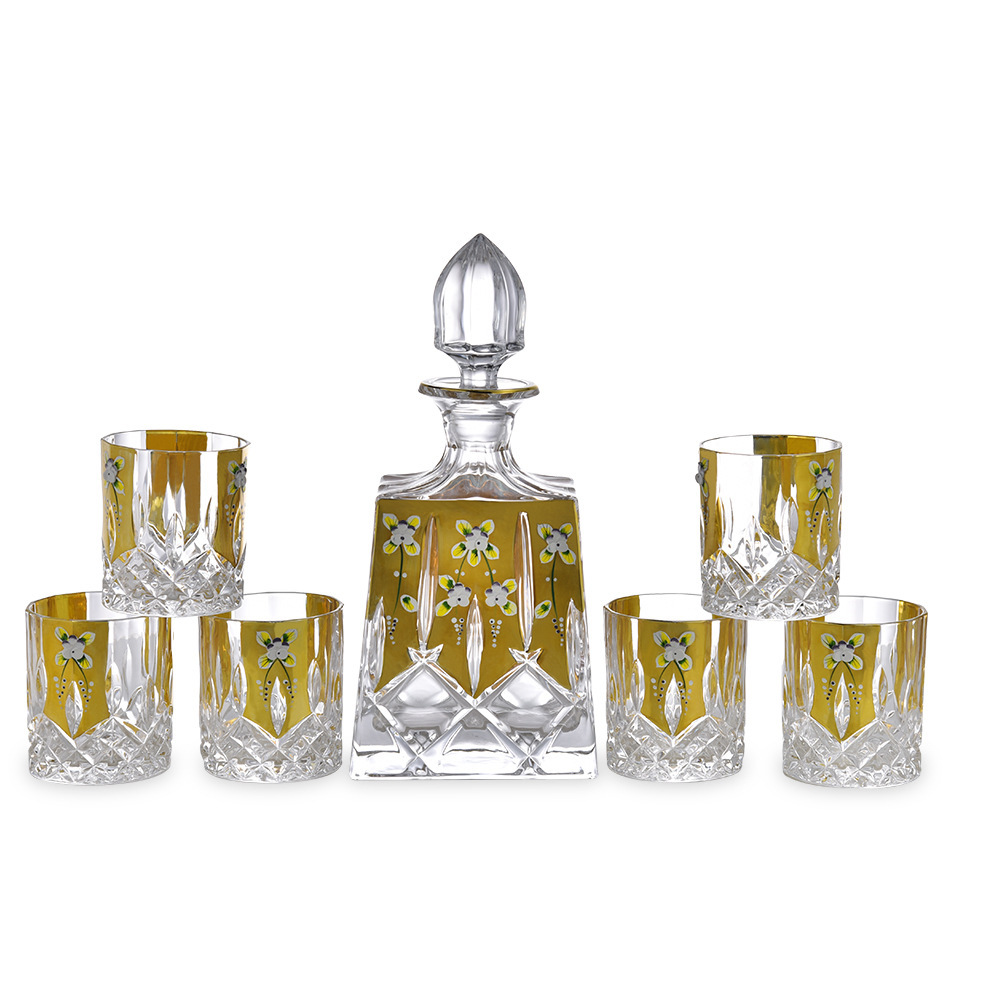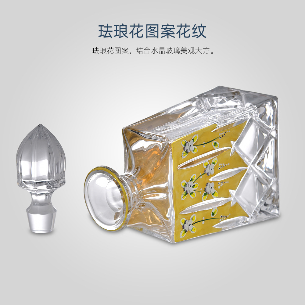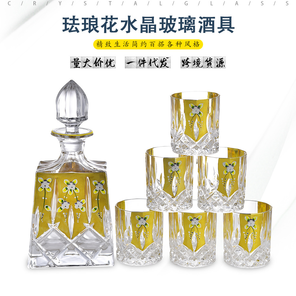 跨境专供威士忌酒樽节日送礼佳品 水晶玻璃真金珐琅花酒具套装