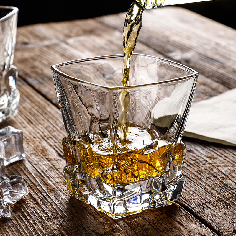 欧式古典不规则烈酒杯 高白料玻璃轻奢啤酒杯个性冰山杯320ml