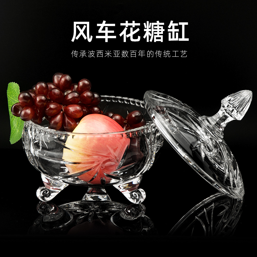 水晶玻璃糖果罐装饰器皿带盖创意欧式糖缸糖罐子装饰品摆件